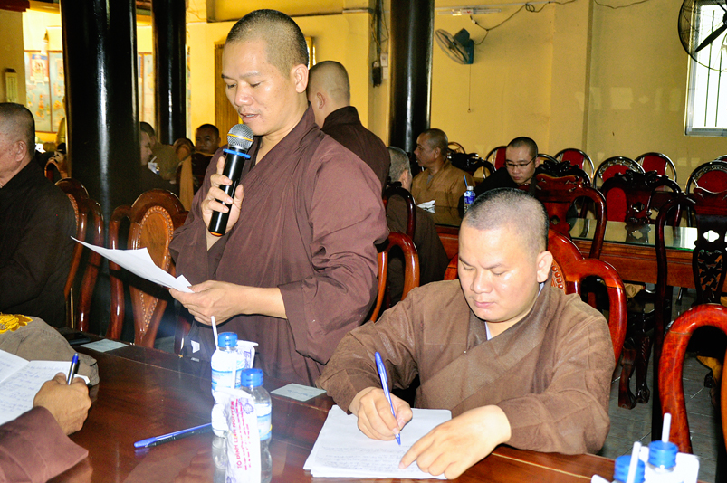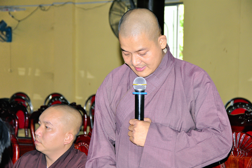 Chư tôn đức cũng lắng nghe Đại đức Thích Chánh Hòa – Trụ trì Tịnh thất Vô Vi cũng trình bày nỗi bức xúc và quan điểm của mình về Thiền Tông Tân Diệu