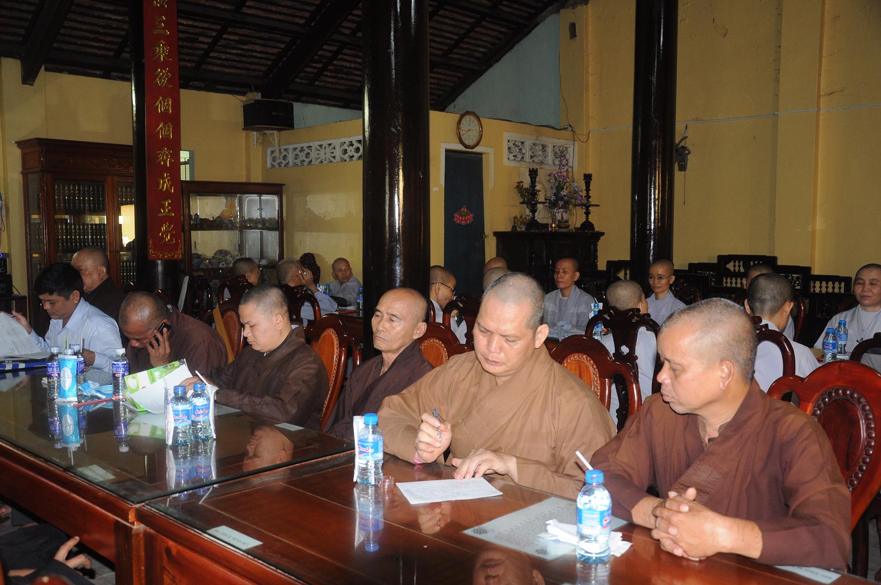 Nội dung trọng tâm của buổi họp là báo cáo hoạt động Phật sự của các tự viện, triển khai công tác tổ chức Sơ cấp Phật học Long An, phát biểu ý kiến của Chư Tôn đức, đúc kết của Ban Trị sự Phật giáo liên huyện, đạo từ chỉ đạo của Ban Trị sự tỉnh.