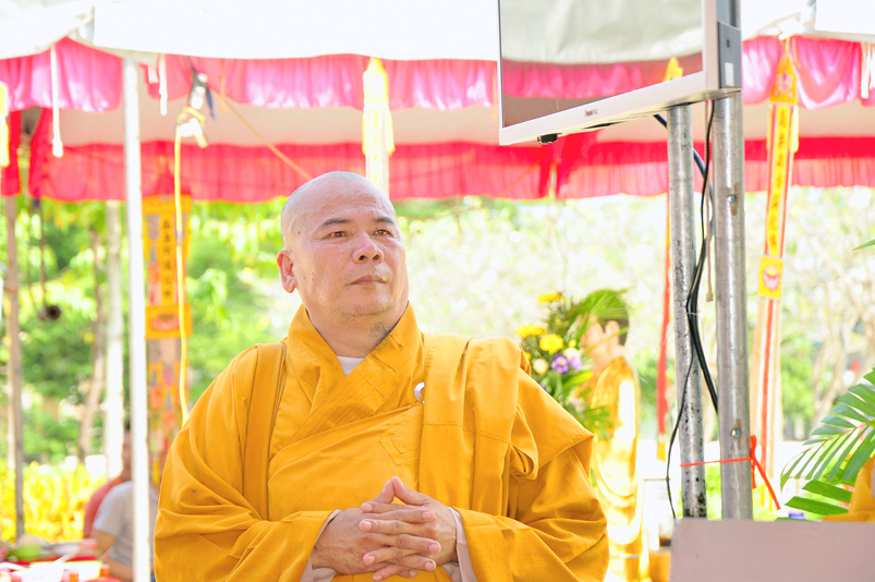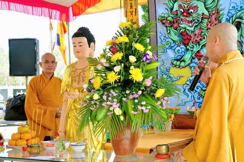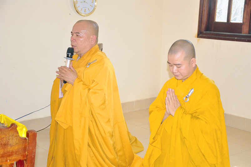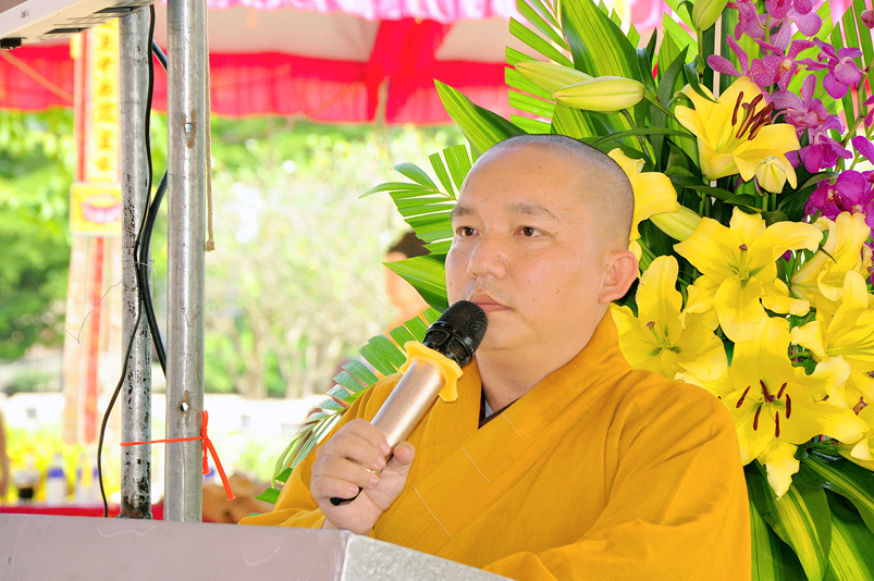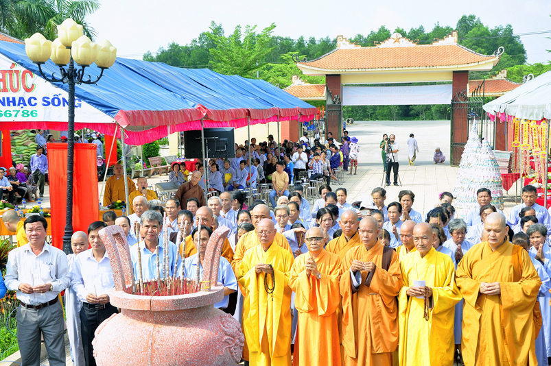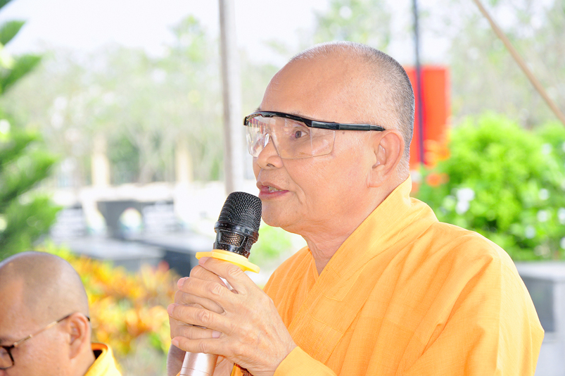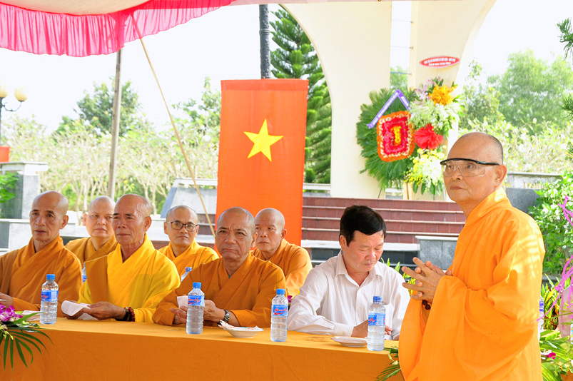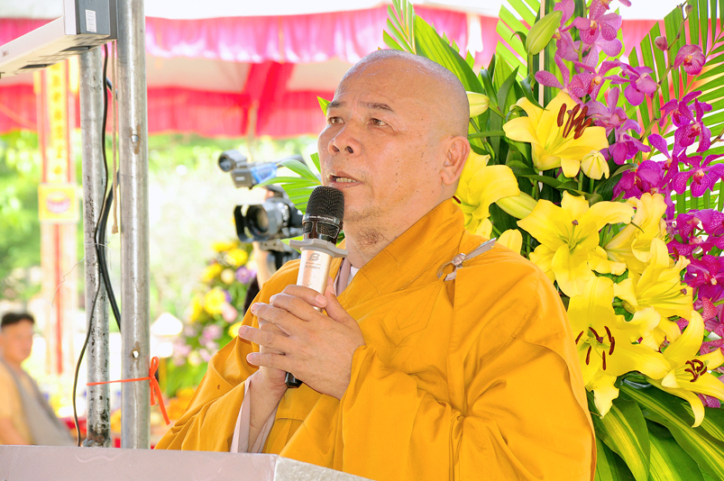 Được sự cho phép của ban tổ chức, Đại đức Thích Minh Trí đã đọc tuyên bố lý do và cung thỉnh Hòa thượng Thích Thiện Phúc, Trưởng Ban tổ chức ban đạo từ cho buổi lễ. Hòa thượng cho rằng: “Đạo Phật đã đồng hành cùng dân tộc trãi qua suốt quá trình chiều dài lịch sử của đất nước; trong 2 thời kỳ kháng chiến chống đế quốc Pháp, Mỹ và những năm khó khăn của đất nước thì Phật giáo luôn luôn là nguồn tựa tâm linh của dân tộc. Thi văn từng nói: “Mái chùa che chở hồn dân tộc, nếp sống muôn đời của tổ tông”. Nói về ý nghĩa của buổi lễ hôm nay là nói về sự biết ơn và đền ơn của Phật giáo Long An nói riêng và tinh thần của đạo Phật nói chung. Thiết nghĩ, non sông có được gấm vóc hay không, có được cường thịnh để sánh vai cùng các cường quốc năm châu hay không là nhờ sự cống hiến, sự hy sinh của anh hùng chiến sĩ, đồng bào tử nạn, các mẹ Việt Nam anh hùng và chư thánh tử đạo. Đối với Phật giáo, tôi kêu gọi đồng bào Phật tử cùng nhau xây dựng khối đại đoàn kết dân tộc để phát huy mạnh mẽ các phong trào tích cực nhằm đóng góp cho sự nghiệp chung của đất nước trong thời kỳ hiện đại, thời kỳ công nghiệp 4.0.