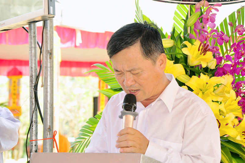 Đại diện lãnh đạo chính quyền huyện Đức Huệ, ông Mai Hữu Ích phát biểu thật cảm đông. Ông cho rằng sự quan tâm, nỗ lực hỗ trợ của Phật giáo là điều vô cùng thiết thực, kính quý đối với huyện nhà. Nhất là sự quan tâm Ban Trị sự GHPGVN tỉnh Long An, của Hòa thượng Thích Minh Thiện lãnh đạo Phật giáo Long An. Phật giáo đã tích cực đóng góp, hướng dẫn bà con tín đồ Phật tử sống và hoạt động đúng theo tinh thần Phật dạy cũng như luật Tín ngưỡng Tôn giáo, các chủ trương, chính sách Pháp luật Nhà nước hiện hành. Điều đó càng tôn vinh cho một giá trị cao hơn của tôn giáo dân tộc với phương châm “Phụng sự đạo pháp – Dân tộc – Chủ Nghĩa Xã Hội” để sống tốt đời đẹp đao. Mong rằng, Phật giáo cùng đồng hành dân tộc và phát huy mạnh hơn nữa khối đại đoàn kết tôn giáo dân tộc trong tương lai.