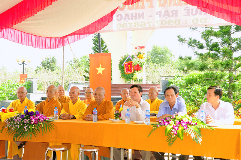 Về chứng minh và tham dự buổi lễ có: Hòa thượng Thích Thiện Phúc – UV BTS GHPGVN tỉnh Long An, Trưởng Ban Trị sự GHPGVN liên huyện Đức Hòa – Đức Huệ, Trưởng Ban tổ chức; Thượng tọa Thích Minh Trung – UV BTS GHPGVN tỉnh Long An, Phó trưởng ban Thường trực BTS GHPGVN liên huyện Đức Hòa – Đức Huệ; Đại đức Thích Thiện Trực – Phó trưởng Ban Trị sự GHPGVN liên huyện Đức Hòa – Đức Huệ; Đại đức Thích Minh Trí – UV BTS GHPGVN tỉnh Long An, Chánh Thư ký BTS GHPGVN liên huyện Đức Hòa – Đức Huệ; Đại đức Thích Nhuận Thành – Phó Trưởng ban Kinh tế Tài chánh BTS GHPGVN Tỉnh Long An, Trưởng ban Kinh tế Tài chánh BTS GHPGVN liên huyện Đức Hòa – Đức Huệ; cùng Chư Tôn đức Thường trực BTS GHPGVN liên huyện Đức Hòa – Đức Huệ; Chư Tôn đức trụ trì các tự viện của liên huyện và hơn 200 vị Phật tử tham dự.