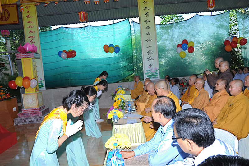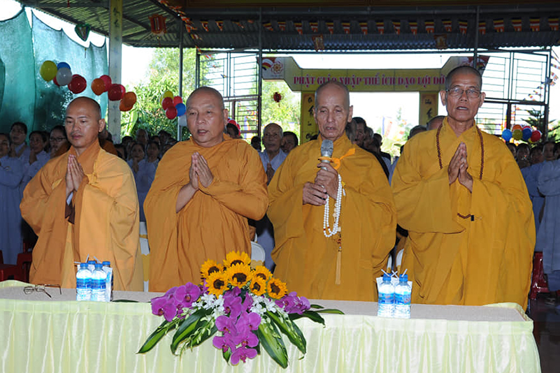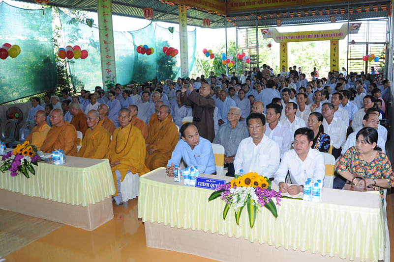 Chứng minh tham dự buổi lễ có: HT. Thích Quảng Ý – UV BTS tỉnh – Trưởng ban BTS GHPGVN lien huyện; ĐĐ. Thích Lệ Trí – UV HDTS – Phó Ban Trị sự – Trưởng Ban Giáo dục Tăng Ni GHPGVN tỉnh Long An; TT. Thích Giác Nguyên – Phó Ban TS GHPGVN tỉnh Long An; ĐĐ. Thích Lệ Tấn – Phó Ban Thường trực GHPGVN liên huyện Tân Thạnh – Kiến Tường – Vĩnh Hưng; ĐĐ. Thích Lệ Thông- Thư ký BTS GHPGVN liên huyện; Sư cô Thích Nữ Như Liên – Phó Ban Trị sự GHPGVN liên huyện; cùng Chư tôn Thiền đức Tăng Ni trụ trì các tự viện trong huyện.