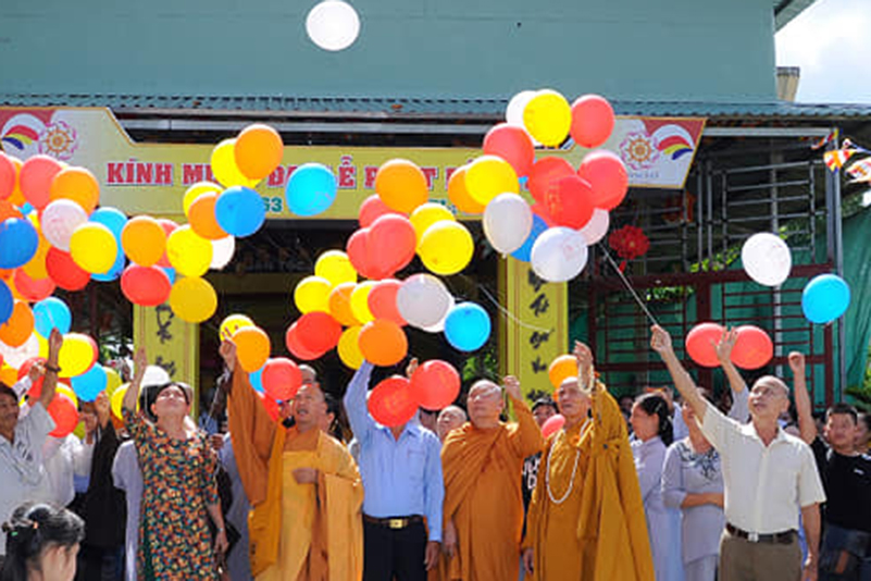 Kết thúc buổi lễ Chư Tôn đức Tăng Ni cử hành nghi thức Kính Mừng Phật đản và thả bong bóng nguyện cầu nguyện thế giới hòa bình, chúng sinh an lạc.