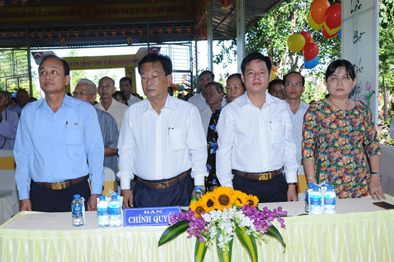Về phía lãnh đạo chính quyền: Ông Nguyễn Xuân Thắm – Phó Bí thư thường trực huyện ủy Tân Thạnh; Ông Nguyễn Văn Chung – Chủ tịch UBMTTQ huyện Tân Thạnh; Bà Đặng Thị Ngọc Lan – Phó phòng Nội vụ huyện Tân Thạnh; Ông Trần Văn Chiến – Trưởng phòng kế hoạch nghiệp vụ Trung tâm y tế huyện Tân Thạnh; Bà Nguyễn Thị Bé Ngoan – Trưởng ban đại diện Hội người cao tuổi huyện Tân Thạnh; Bà Mai Trí Thệ – Phó hiệu trưởng Trường THPT Tân Thạnh; Ông Trần Văn Soái – Bí Thư đảng ủy xã Tân Hòa; Ông Nguyễn Văn Hùng – Chủ tịch UBND xã Tân Hòa; Ông Huỳnh Thanh Sang – Chủ tịch UB MTTQ xã Tân Hòa; cùng các cấp chính quyền cũng trở về tham dự buổi lễ.