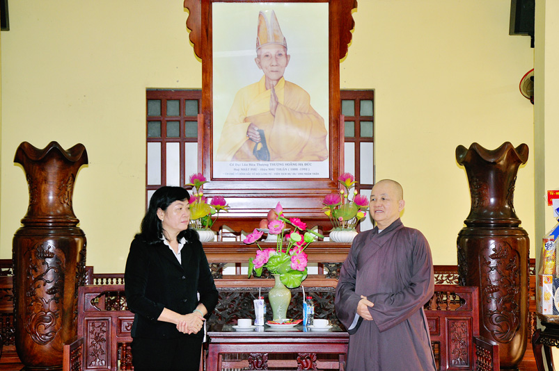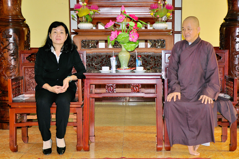 HT. Thích Minh Thiện tiếp chuyện cùng bà Phạm Ngọc Tiệp