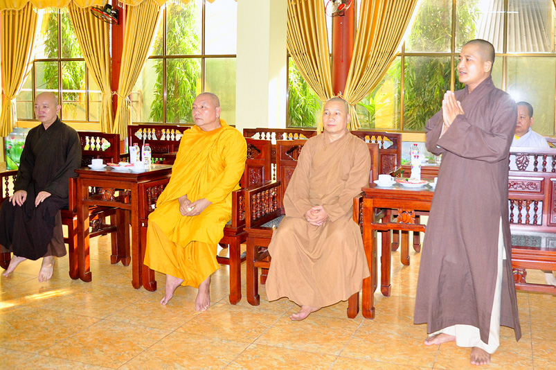 Tiếp đón phái đoàn HT. Thích Minh Thiện- Uỷ viên HĐTSTƯ, Phó ban Hoằng pháp trung ương, Trưởng Ban trị sự GHPGVN tỉnh Long An; TT. Thích Quảng Tâm- Phó Thường trực BTS. GHPGVN tỉnh Long An; TT. Thích Giác Nguyên- Phó BTS. GHPGVN tỉnh Long An; ĐĐ. Thích Đức Hoàng- Phó Ban trị sự GHPGVN tỉnh Long An; ĐĐ. Thích Lệ Duyên- Chánh thư ký Ban trị sự GHPGVN tỉnh Long An; ĐĐ. Thích Lệ Ngôn – Trưởng ban Hoằng pháp BTS GHPGVN tỉnh Long An cùng Chư tôn đức Tăng, Ni trong thường trực Ban trị sự GHPGVN tỉnh Long An.