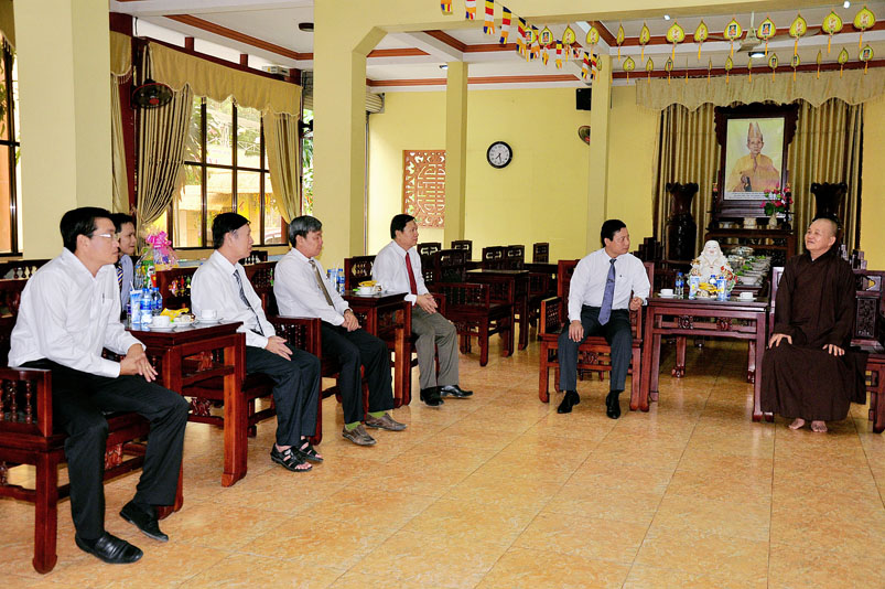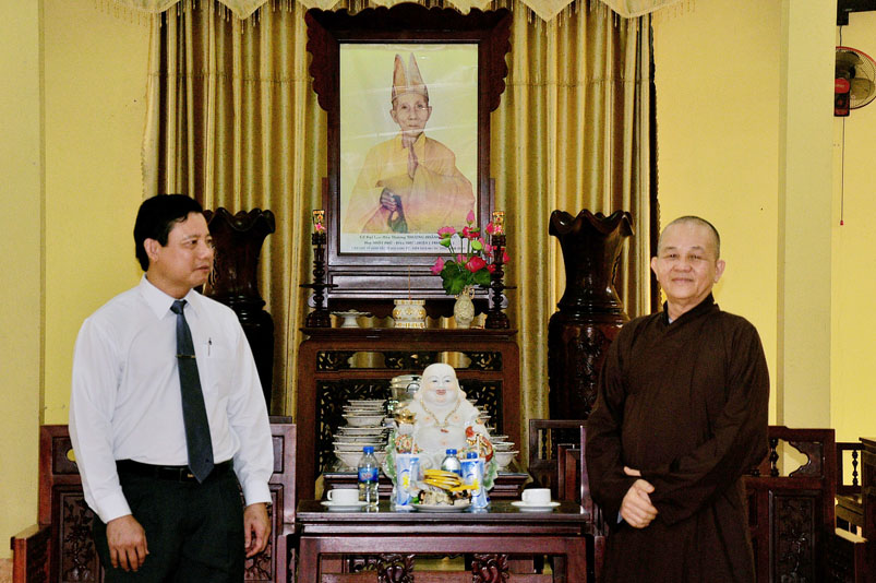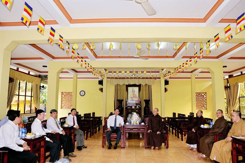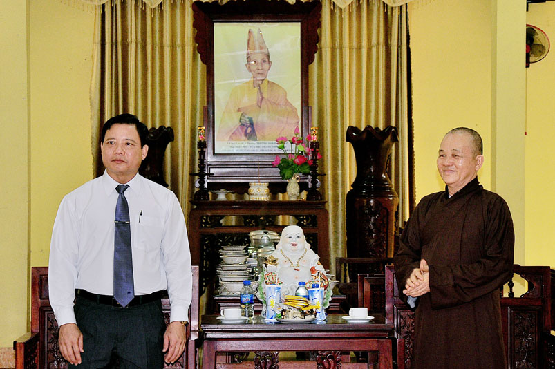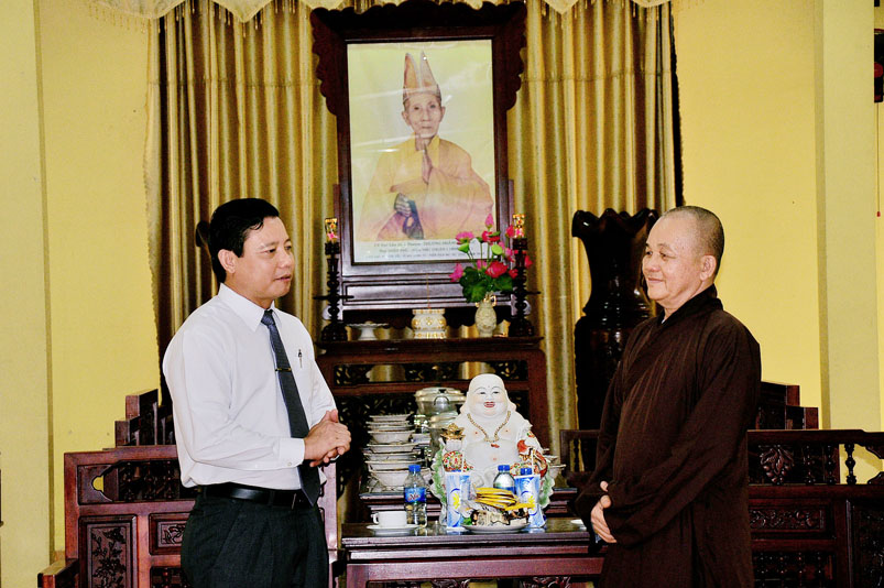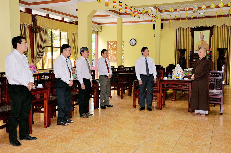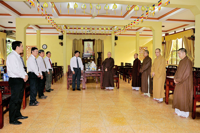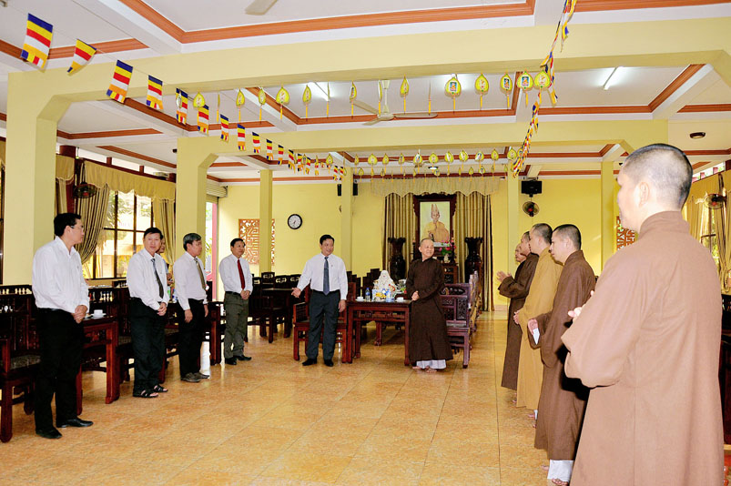 Trong quang cảnh hòa hợp Đạo pháp – Dân tộc, Hòa thượng Thích Minh Thiện- Uỷ viên Hội đồng Trị sự trung ương, Phó ban Hoằng pháp trung ương GHPGVN, Trưởng Ban Trị sự GHPGVN tỉnh Long An trân trọng cùng chư Tôn đức thành viên Ban Trị sự: ĐĐ. Thích Lệ Trí- Uỷ viên HĐTSTƯ, Phó Ban Trị sự kiêm Trưởng ban Giáo dục Tăng Ni GHPGVN tỉnh Long An; ĐĐ. Thích Lệ Duyên- Chánh thư ký Ban Trị sự GHPGVN tỉnh Long An; ĐĐ. Thích Thiện Danh- Phó thư ký kiêm Chánh văn phòng GHPGVN tỉnh Long An; ĐĐ. Thích An Nhựt- Trưởng ban Hướng Dẫn Phật tử GHPGVN tỉnh Long An, tiếp đón phái đoàn các cấp lãnh đạo tỉnh Long An.