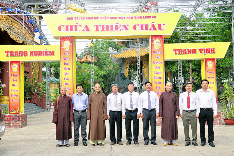Nhân dịp Đại lễ Phật đản Liên Hiệp Quốc (Vesak 2019) PL. 2.563 tổ chức tại Việt Nam, sáng ngày 02/5/2019(03/04/ Kỷ hợi), phái đoàn lãnh đạo tỉnh Long An do ông Phạm Tấn Hòa – Phó Chủ tịch UBND tỉnh Long An(làm trưởng đoàn)cùng với Ông Nguyễn Văn Hiền- Phó Chủ tịch MTTQVN tỉnh Long An; Ông Công Hoàng Bạch- Phó Ban Dân vận tỉnh Long An; Ông Nguyễn Văn Bon- Giám đốc Sở Nội vụ tỉnh Long An; Ông Võ Minh Hoàn- Đại biểu Quốc hội tỉnh Long An; Ông Nguyễn Văn Mưng- Phó Ban Tôn giáo tỉnh Long An đã đến thăm, chúc mừng Chư tôn đức, Tăng Ni, Phật tử tại văn phòng Ban Trị sự Giáo hội Phật giáo Việt Nam tỉnh Long An (chùa Thiên Châu, số 101, đường Huỳnh Văn Nhứt, phường 3, Tp. Tân An, tỉnh Long An).
