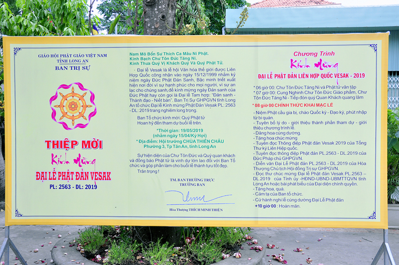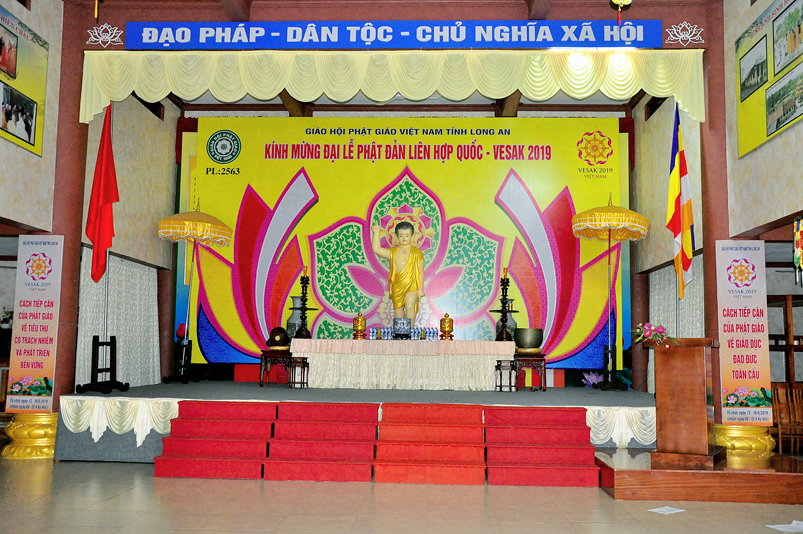 Đại lễ Vesak còn gọi là lễ Tam hợp, là một ngày lễ trọng đại kỷ niệm 3 sự kiện quan trọng trong cuộc đời của Đức Phật gồm; Phật Đản sinh, Phật Thành đạo và Phật Niết bàn. Với ý nghĩa trọng đại mang tính lịch sử ấy, Phật giáo tỉnh Long An đã có nhiều chương trình Phật sự đặc sắc chuẩn bị đón mừng Đại Lễ Phật đản Liên Hiệp Quốc. Và như Xuân về trăm hoa đua nở, Hè sang hoa phượng rực hồng, thì quang cảnh đón mừng ngày Đức Phật Đản sanh của Phật giáo tỉnh Long An cũng như thế. Các tự viện trực thuộc 13 huyện thị, nơi nơi đều hân hoan, nhộn nhịp trang trí cờ hoa rực rỡ sắc màu, trang nghiêm đoàn xe hoa chuẩn bị diễu hành trên các tuyến đường huyện thị, trung tâm thành phố Tân An tỉnh Long An.