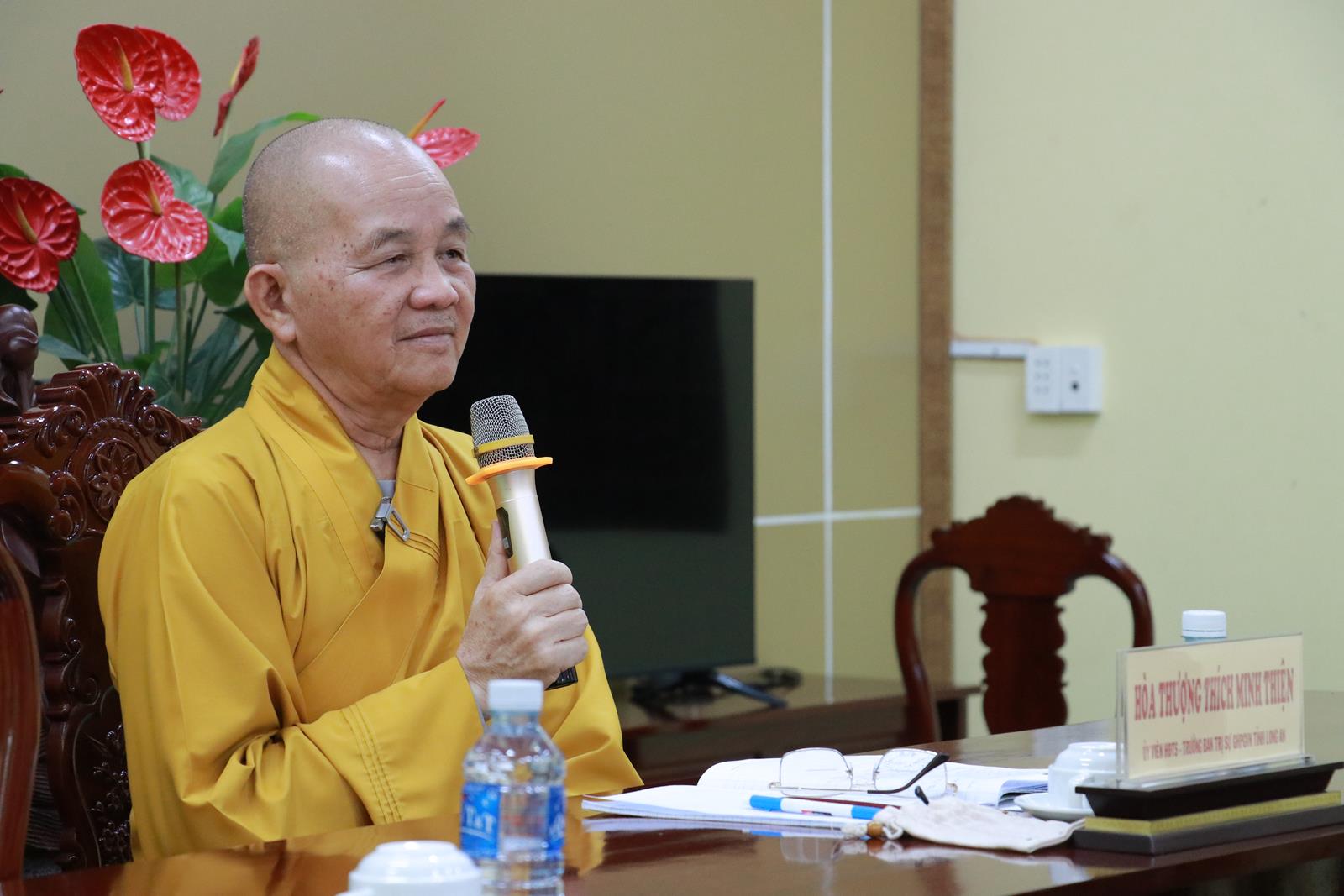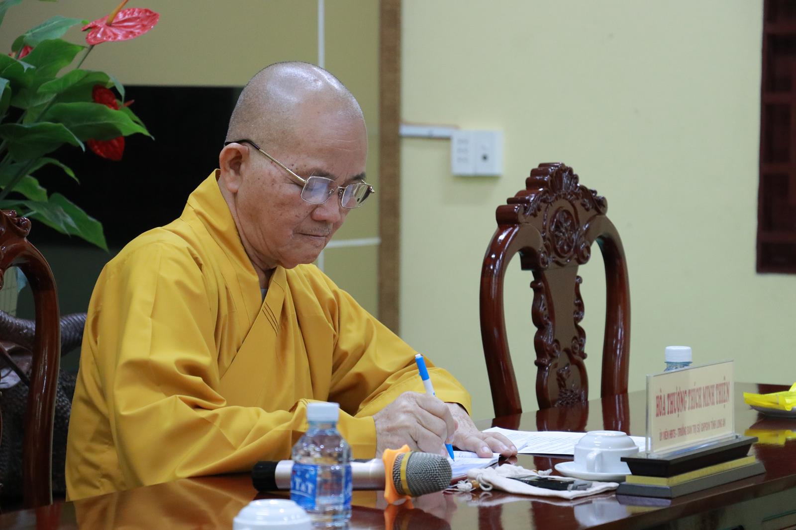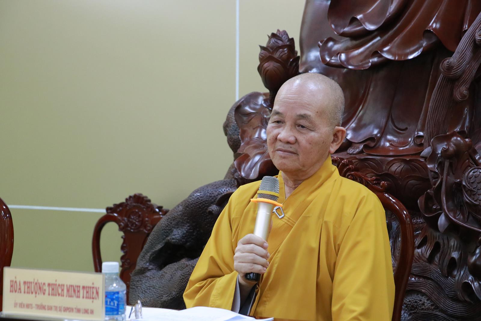 Phát biểu chỉ đạo trong phiên họp, HT. Thích Minh Thiện mong muốn Chư Tôn đức khuyến khích Tăng Ni tại địa phương theo học Lớp Sơ cấp Phật học Long An Khóa IX (2025-2027) tại chùa Pháp Minh để đào tạo đội ngũ kế thừa. Hòa thượng đã có những chỉ đạo cụ thể cho từng ý kiến mà Chư tôn đức đã phát biểu trong phiên họp. Hòa thượng nhắc nhở Tăng Ni trong mọi hoạt động phải theo sư chỉ đạo của Ban Trị sự Phật giáo huyện, tuyệt đối tuân thủ Pháp luật Nhà nước, không gây bất kỳ trở ngại nào cho Phật giáo và chính quyền.