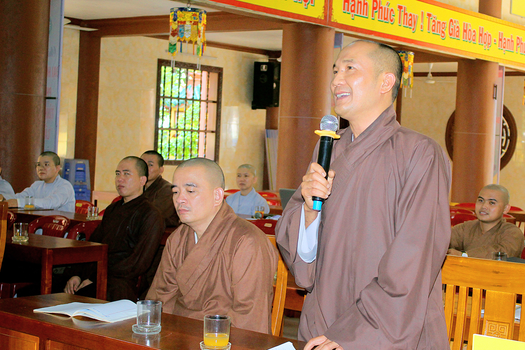 Sau đó, Đại đức Thích Lệ Duyên tiếp tục thỉnh ý của chư Tôn đức về các công tác đã nêu, chư Tôn đức hiện tiền đã hoan hỷ đóng góp ý kiến về mọi mặt nhằm đóng góp và kiện toàn các công tác cho việc tổ chức Đại hội sắp đến.