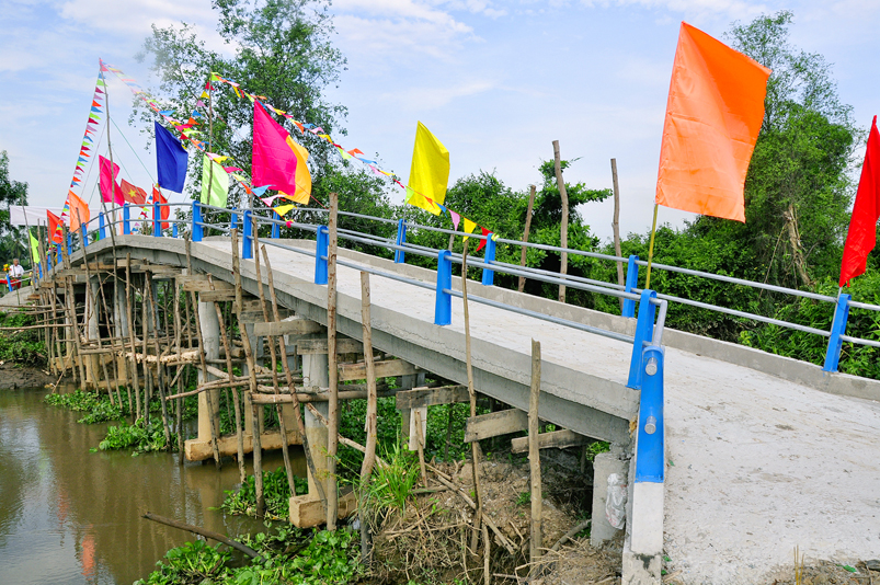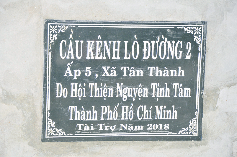 Cầu kênh Lò Đường 2- ấp 5 xã Tân Thành do Phật tử Tâm Tín làm cầu nối vận động Hội Thiện Nguyện Tịnh Tâm TP HCM tài trợ.