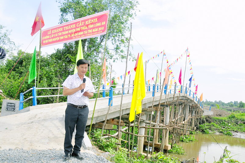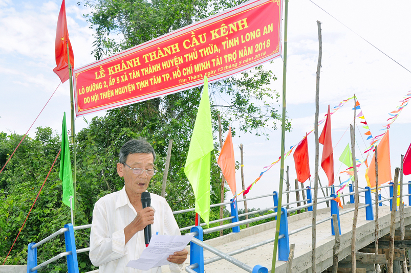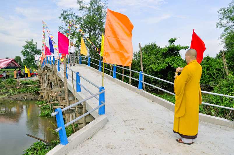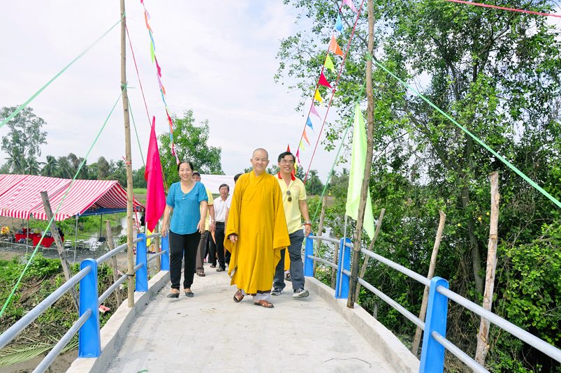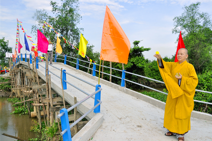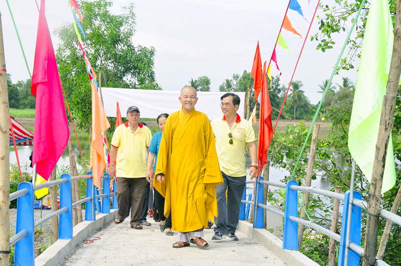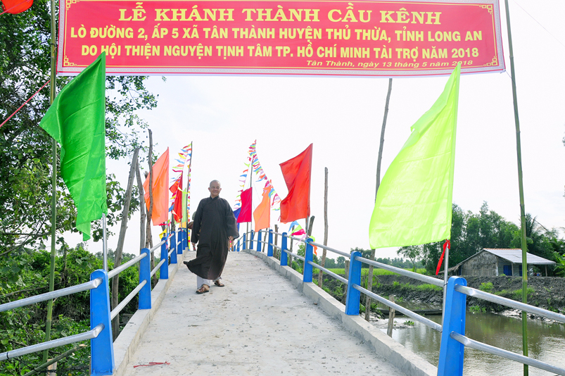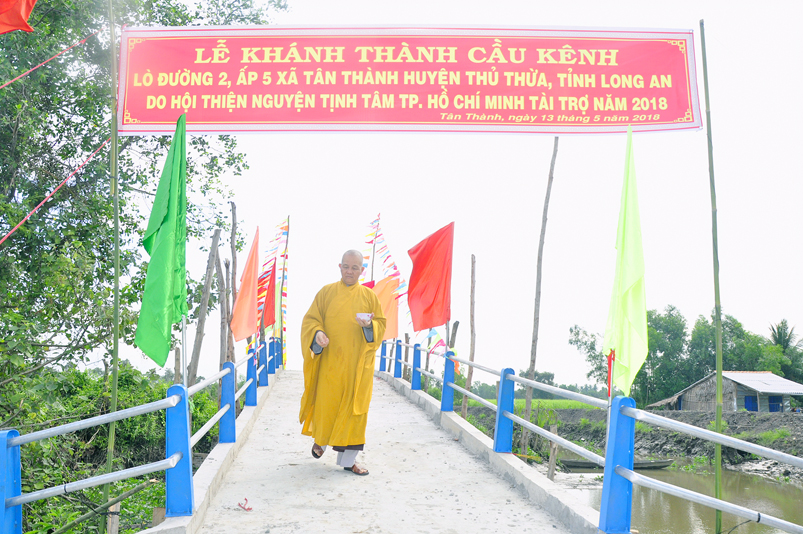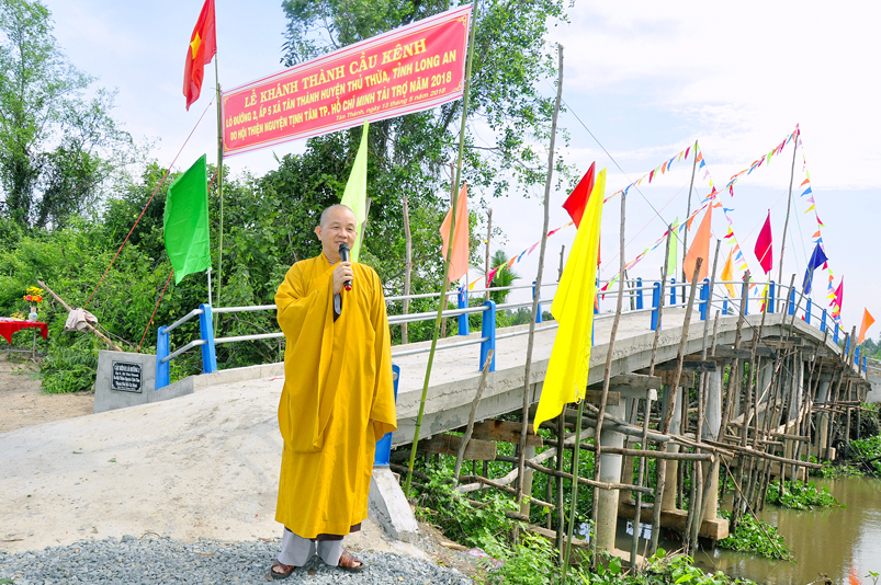 Xưa nay, Phật giáo lúc nào cũng đồng hành cùng Dân tộc. Cây cầu này hình thành là thành tích chào mừng lễ Phật đản Phật lịch 2562. Phật giáo Long An luôn phát động phong trào an sinh xã hội theo tinh thần từ bi của đạo Phật. Hiện nay ở nước xuất hiện nhiều đạo lạ không ít làm mất đi truyền thống, bản sắc văn hoá của Dân tộc và tinh thần đoàn kết. Do đó, Phật tử nên tiếp tục phát huy tinh than đoàn kết hơn nữa sống tốt đời đẹp đạo. Hoà thượng mong muốn những nghĩa cử, việc làm cao đẹp sẽ tiếp tục được lan tỏa.”