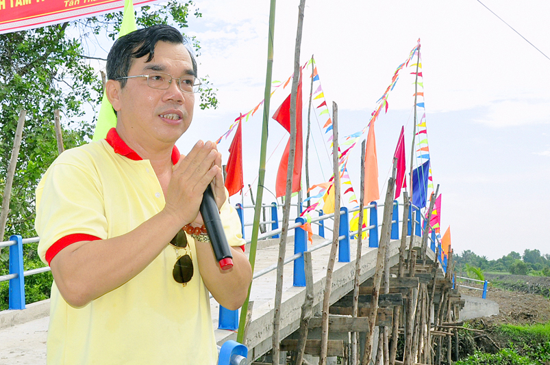 Tại buỗi lễ, ngoài phần báo cáo quá trình xây dựng cầu, cảm ơn của UBND xã, Phật tử Tâm Tín, ông Nguyễn Hòa Phương đã có lời phát biểu đầy cảm động.