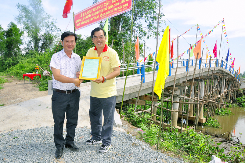 Hướng về Đại lễ Phật đản Phật lịch 2562, sáng ngày 13/5/2018( 28/3/ Mậu Tuất), Ban trị sự GHPGVN tỉnh Long An, đơn vị tài trợ, phối hợp với Đảng ủy-HĐND- UBND-UBMTTQVN xã Tân Thành –huyện Thủ Thừa tổ chức Lễ khánh thành cầu kênh Lò Đường 2 ấp 5-xã Tân Thành.