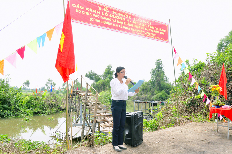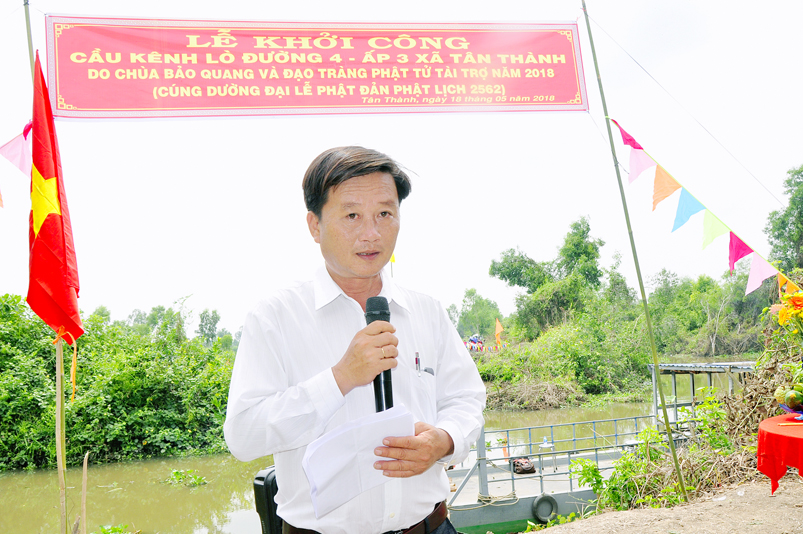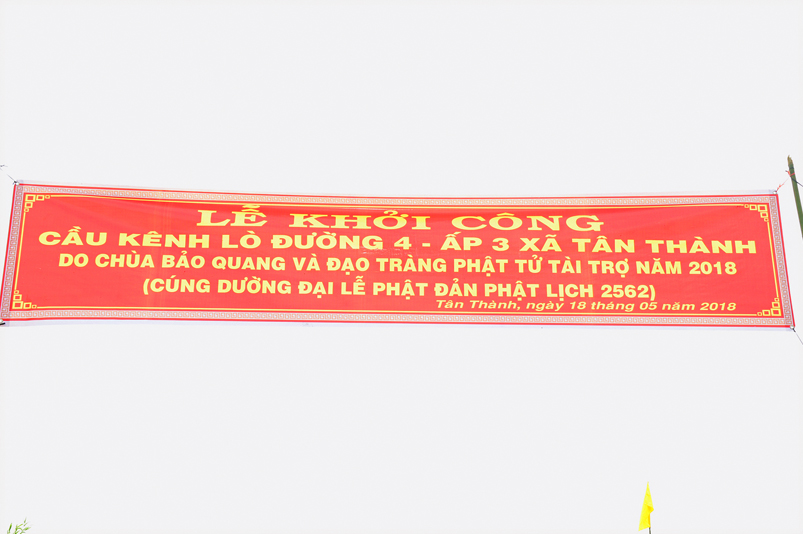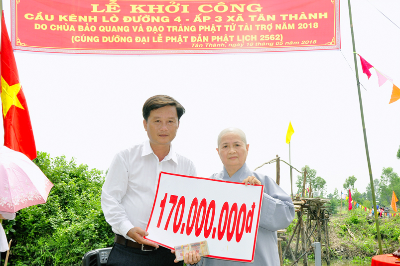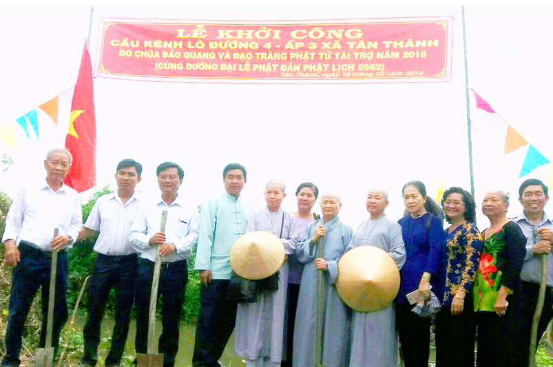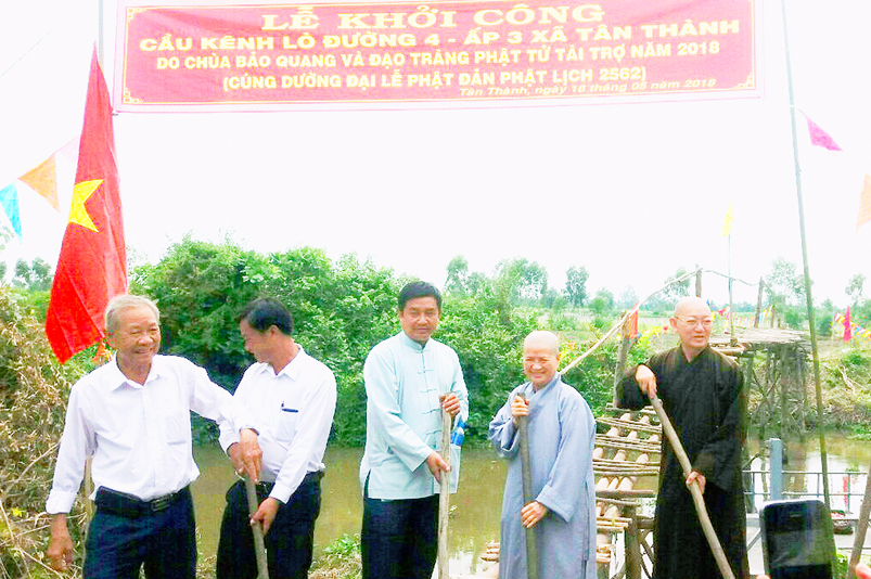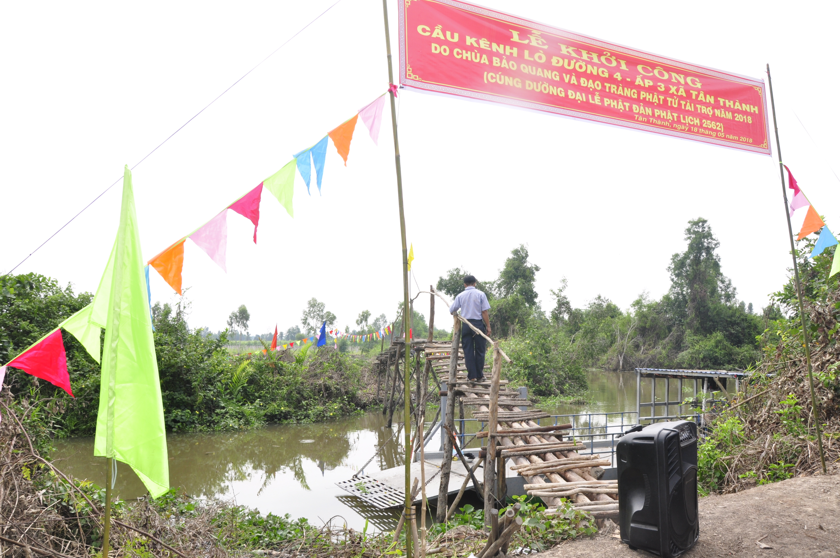 Cầu kênh Lò Đường 4- ấp 3 xã Tân Thành do Phật tử Tâm Tín làm cầu nối vận động Ni Trưởng Thích Nữ Như Lộc và Đại Chúng cùng Đạo Tràng Phật Tử chùa Bảo Quang –quận Tân Phú -TP HCM tài trợ kinh phí 170 triệu đồng. Cầu dự kiến xây dựng với chiều dài là 32m chiều ngang là 2,5 m.
