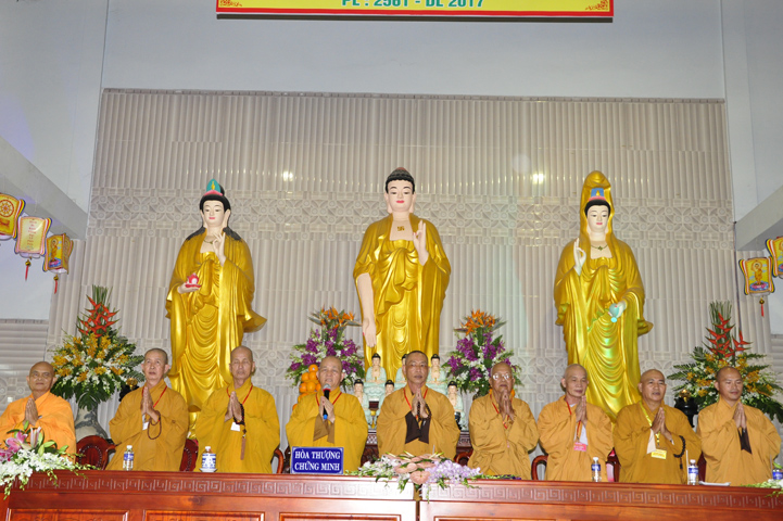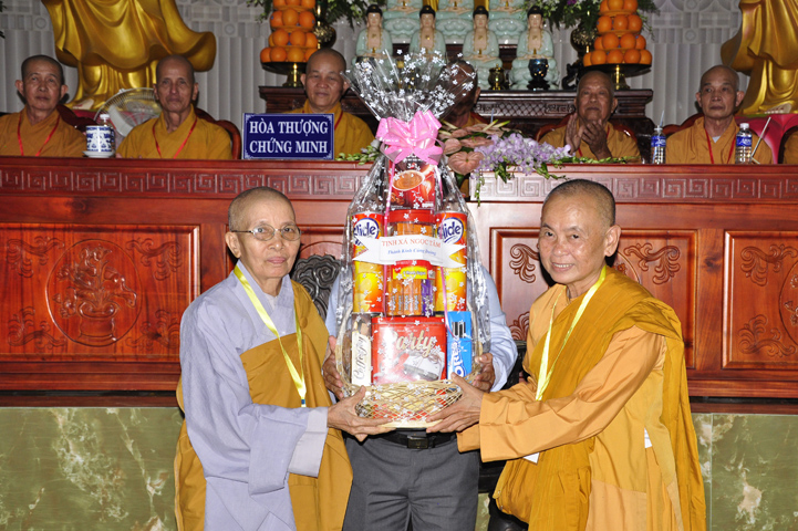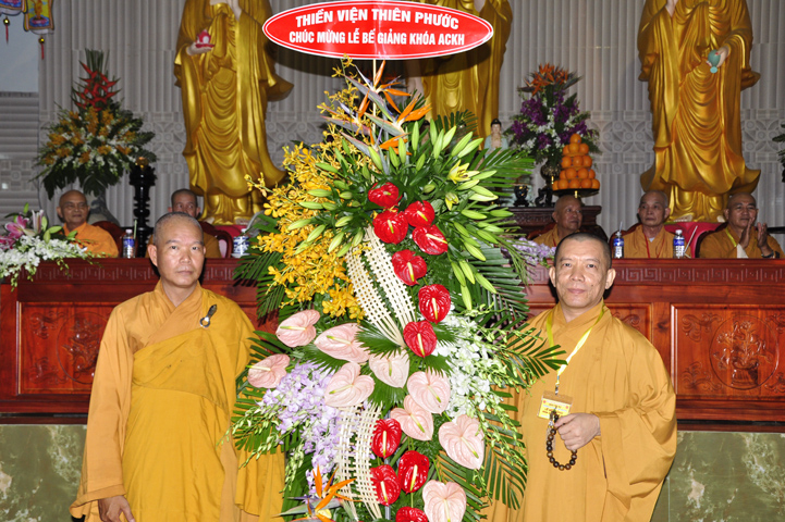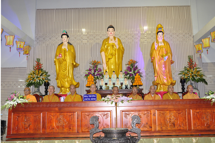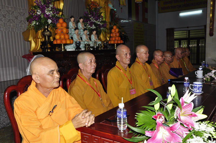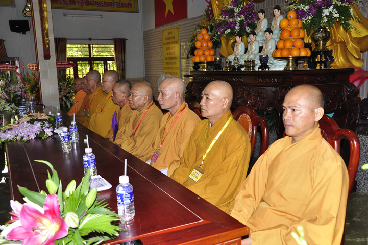 Chứng minh đại lễ, Ban tổ chức được cung tiếp: Hòa thượng Thích Thiện Huệ: Chứng minh Ban Trị sự Giáo hội Phật giáo Việt Nam tỉnh Long An; Hoà thượng Thích Minh Thiện: Uỷ viên trực Hội Đồng Trị sự Trung ương, Phó ban Hoằng pháp kiêm Trưởng giảng sư đoàn Trung ương giáo hội Phật giáo Việt Nam, Trưởng ban Trị sự Giáo hội Phật giáo Việt Nam tỉnh Long An; Hòa thượng Thích Thiện Tâm:Phó ban Trị sự Giáo hội Phật giáo Việt Nam tỉnh Long An; Hòa thượng Thích Thiện Phúc: Ủy viện ban Trị sự Giáo hội Phật giáo Việt Nam tỉnh Long An, Trưởng ban Trị sự Giáo hội Phật giáo liên huyện Đức Hòa, Đức Huệ; Hòa thượng Thích Chơn Đạo: Giáo thọ trường trung cấp Phật học Long An; Hòa thượng Thích Quãng Ý: Trưởng ban Trị sự Giáo hội Phật giáo Việt Nam liên huyện: Kiến Tường, Vĩnh Hưng, Tân Thạnh; Hòa thượng Thích Thiện Tài: quyền Trưởng ban Nghi lễ Giáo hội Phật giáo Việt Nam tỉnh Long An; Hòa thượng Thích Từ Thiện: Trưởng ban Trị sự Giáo hội Phật giáo Việt Nam huyện Tân Trụ; Đại đức Thích Lệ Trí: Uỷ viên Hội đồng Trị sự Trung ương Giáo hội Phật giáo Việt Nam, Trưởng ban Hoằng pháp Giáo hội Phật giáo Việt Nam tỉnh Long An; cùng chư giáo phẩm tỉnh/ huyện, chư tôn thiền đức Tăng Ni.