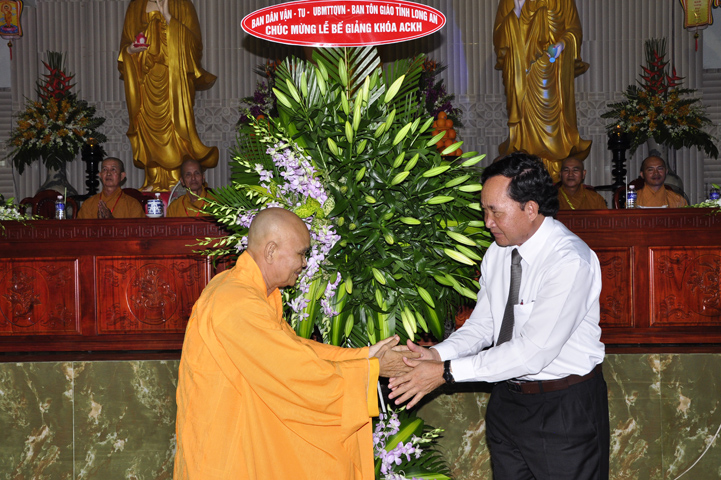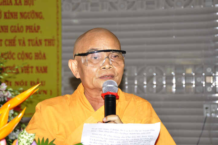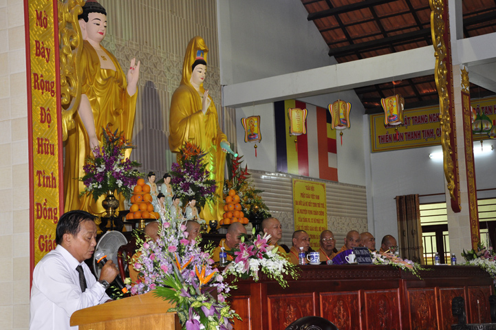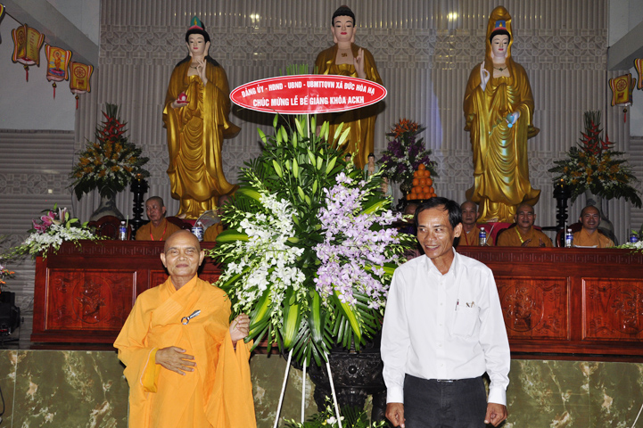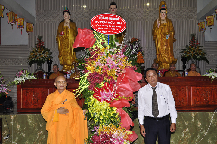 Về tham dự, ông Lê Văn Tư – Chủ tịch Mặt trận Tổ quốc Việt Nam huyện Đức Hòa, đại diện Chính quyền các cấp đã có lời chúc mừng và nhắc lại truyền thống gắn kết đạo đời mà Phật giáo đã thể hiện từ khi du nhập cho đến nay,đó cũng là tinh thần đại đoàn kết dân tộc.
