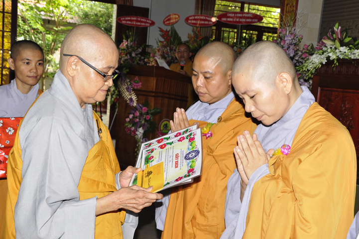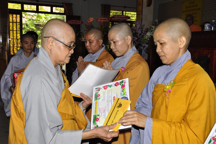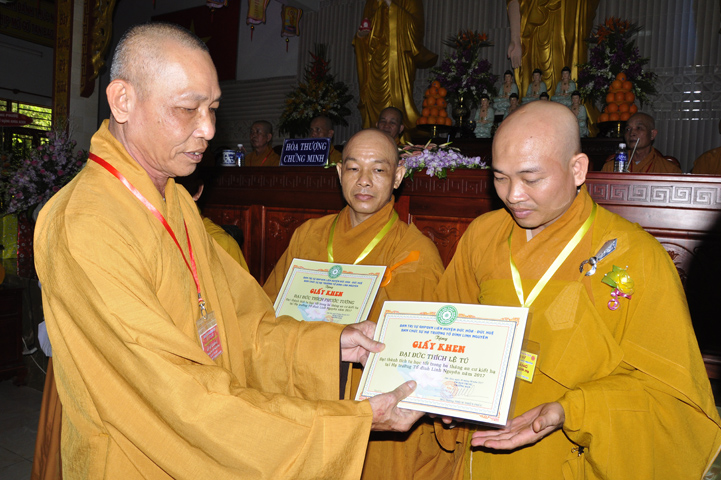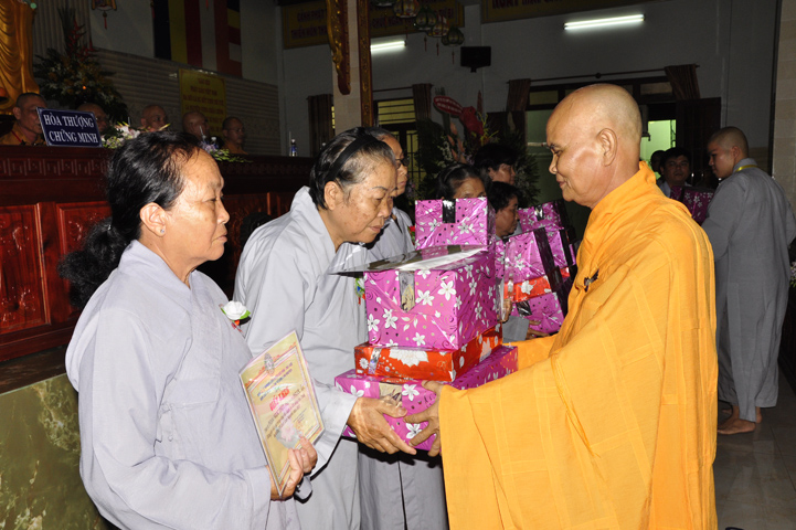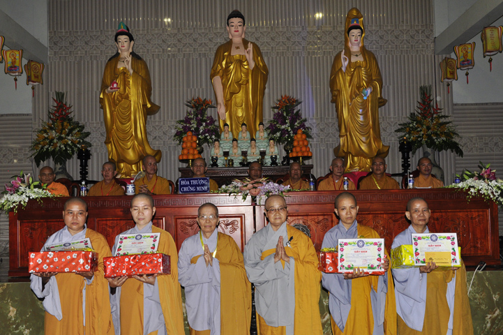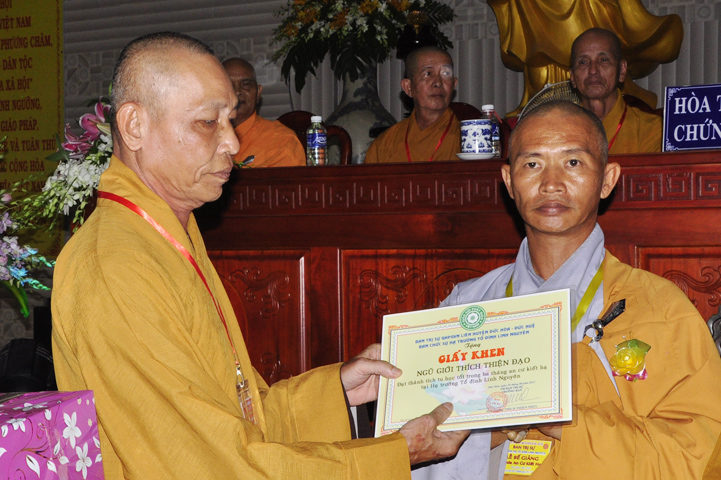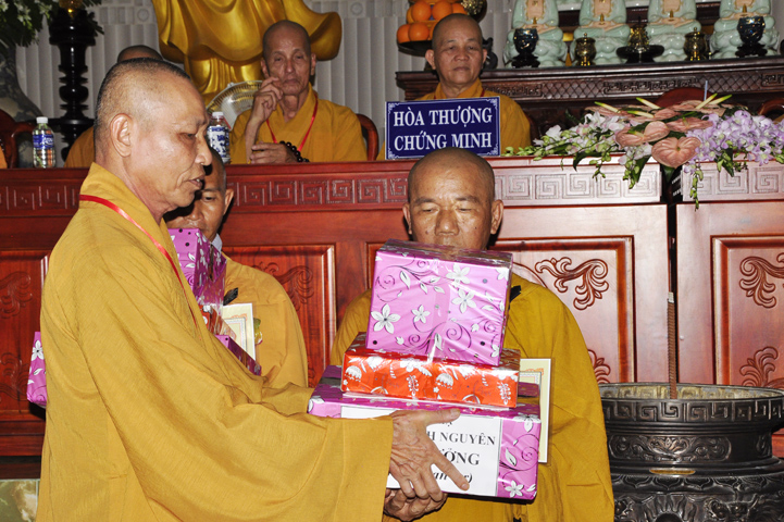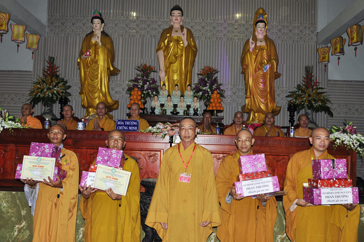 Những hành giả tinh tấn tu học theo Giới luật, theo nội quy hạ trường được ban tổ chức khen thưởng khích lệ và được nhận quà từ Hòa thượng Thích Thiện Huệ – Chứng minh ban Trị sự Giáo hội Phật giáo Việt Nam tỉnh Long An.