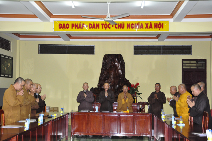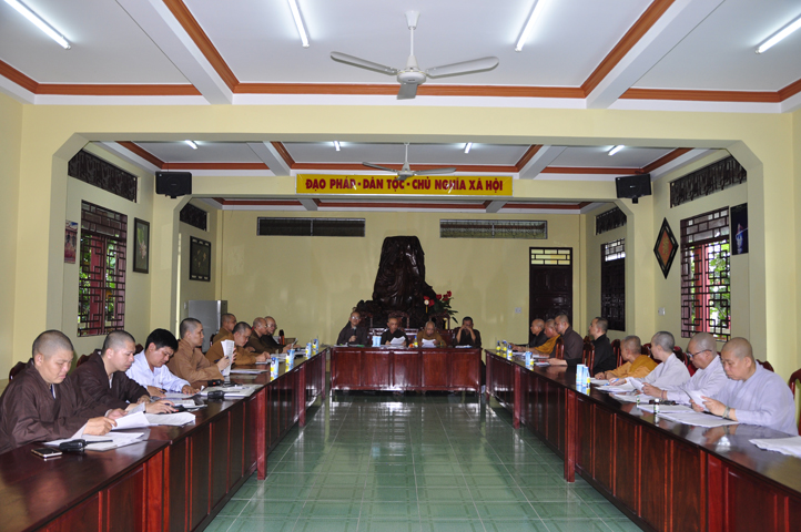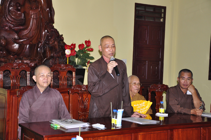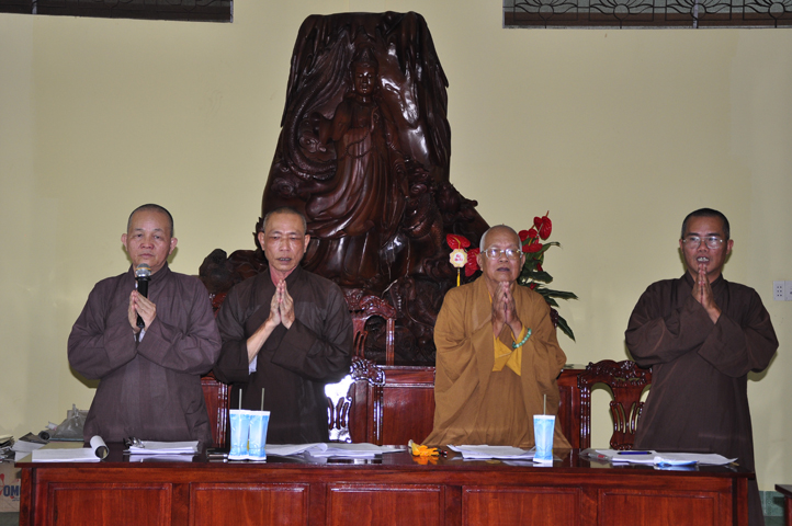 Buổi họp kết thúc với phần phát biểu của HT. Thích Thiện Huệ( chứng minh Ban trị sự). Hoà thượng rất hoan hỷ theo kịch bản đã trình bày, phần đóng góp ý kiến của Chư tôn đức cũng như những chỉ đạo của Hoà thượng trưởng Ban tổ chức. Hoà thượng dạy “Đại hội của Phật giáo tỉnh nhà có thành công hay thất bại đều do sự thống nhất trên mọi phương diện. Ngày Đại hội thành công là một bước ngoặc khởi đầu thuận lợi cho cả một nhiệm kỳ tốt đẹp.