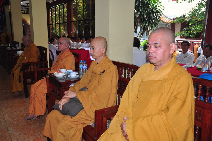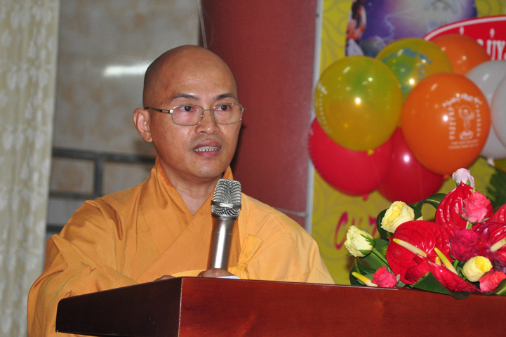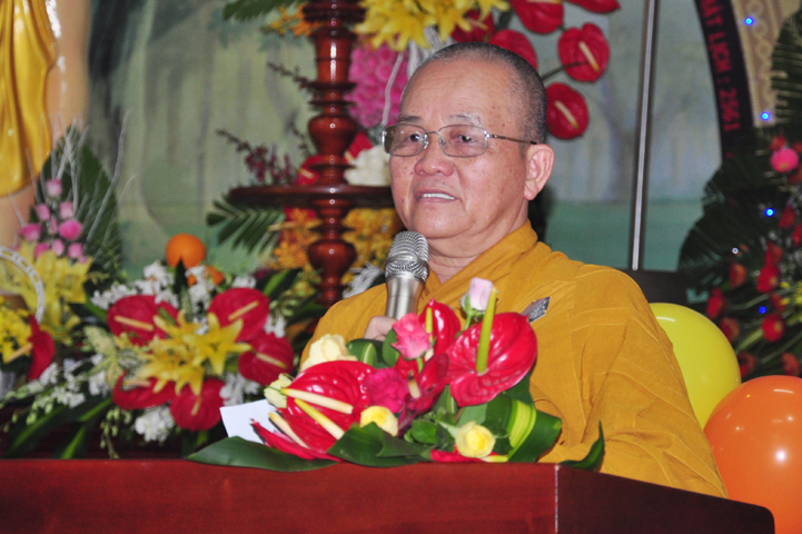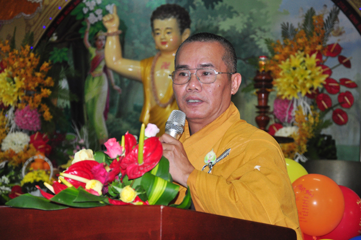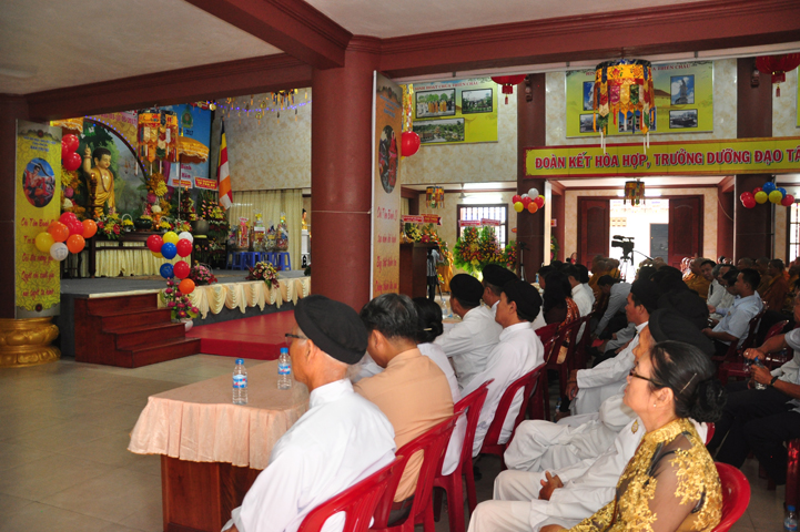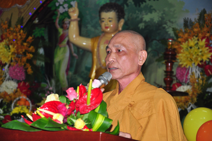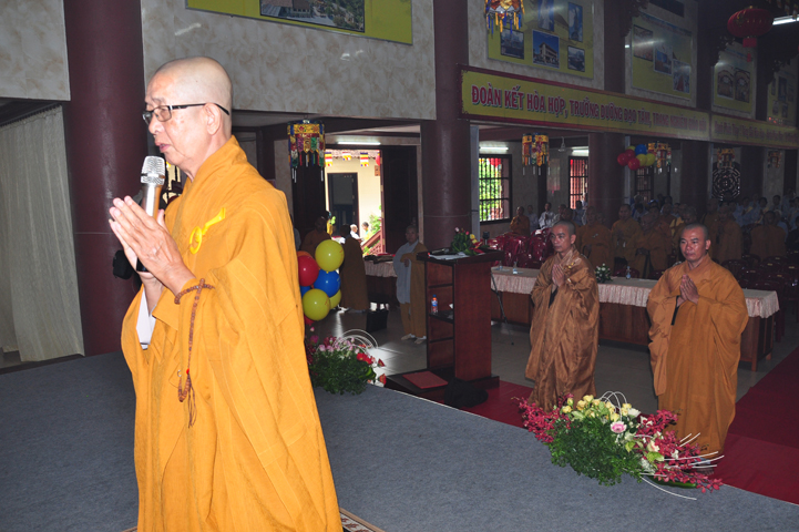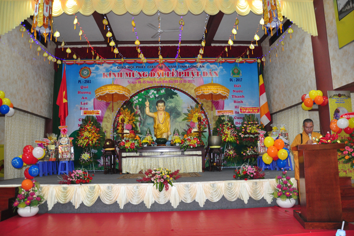 Tiếp theo đó, TT. Thích Minh Thọ, UV HĐTS, Phó ban Thường trực BTS GHPGVN tỉnh đọc diễn văn Phật đản của Hòa thượng Chủ tịch HĐTS GHPGVN. Diễn văn đã nhấn mạnh vị trí thiết yếu của Đạo Phật trong lòng dân tộc, là một tôn giáo đạo đức có đầy đủ các phương pháp biện chứng thực tiễn đưa con người đến một đời sống nhân bản hướng thượng; một cuộc sống hài hòa giữa thân và tâm, an lạc, hạnh phúc qua thực hành Giới – Định – Tuệ theo con đường Trung đạo. Trong đó, Tăng-già đóng vai trò quan trọng trong việc duy trì Phật giáo trường tồn từ thế hệ này sang thế hệ khác.