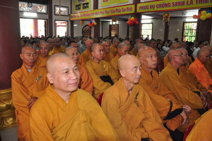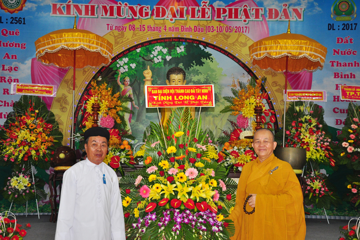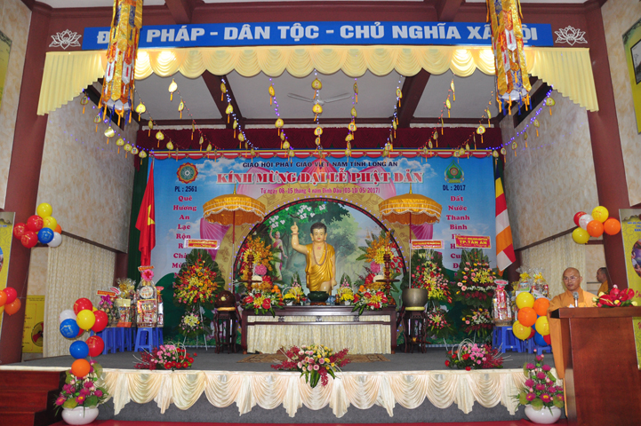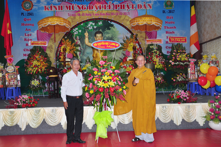 Thành phần chư tôn Giáo phẩm quang lâm chứng minh Đại lễ: HT. Thích Thiện Huệ- Chứng minh BTS. GHPGVN tỉnh Long An; HT. Thích Minh Thiện- Uỷ viên HĐTSTƯ, Phó Ban Hoằng pháp TW, Trưởng Ban trị sự GHPGVN tỉnh Long An, Trưởng Ban tổ chức Đại lễ Phật đản; TT.Thích Minh Thọ- UVHĐTSTƯ, Phó thường trực BTS. GHPGVN tỉnh Long An; HT. Thích Thiện Tâm- Phó BTS. GHPGVN tỉnh Long An; HT. Thích Huệ Hồng- Phó BTS. GHPGVN tỉnh Long An; TT. Thích Giác Nguyên- Phó BTS. GHPGVN tỉnh Long An cùng chư tôn hòa thượng, chư thượng tọa đại đức tăng ni trong Thường trực Ban trị sự tỉnh, huyện và hơn 1000 Phật tử tham dự.