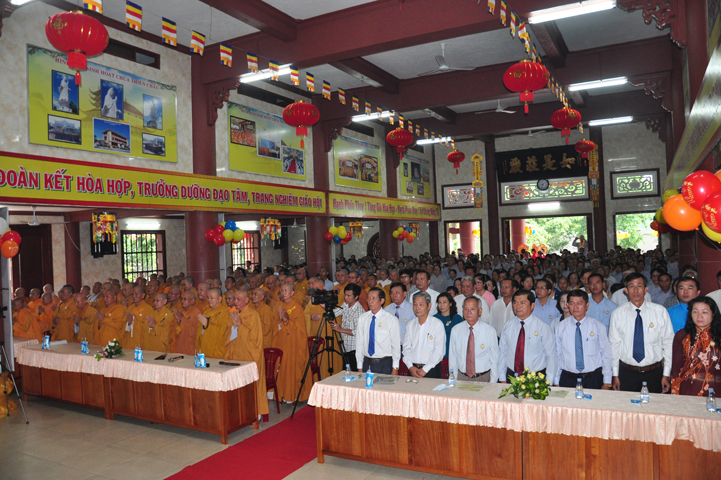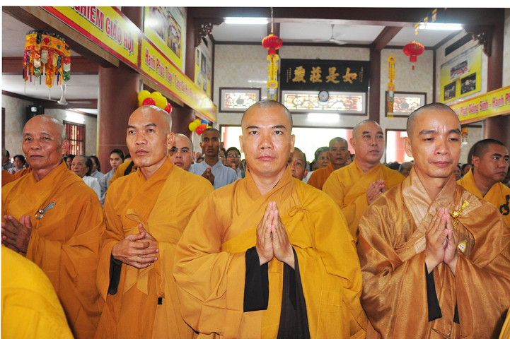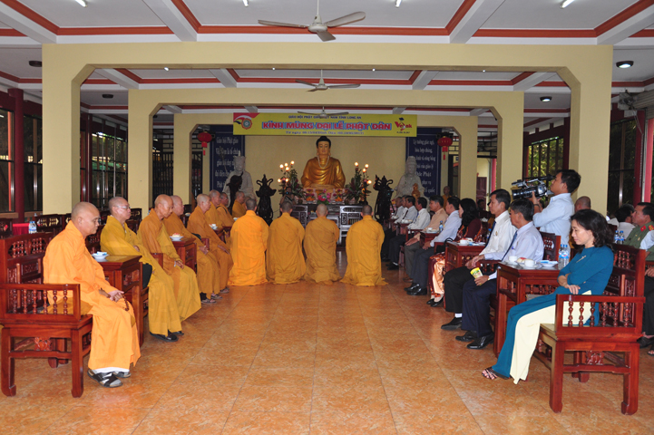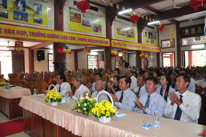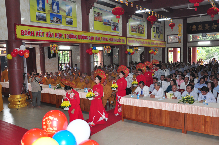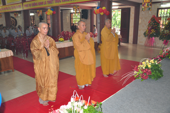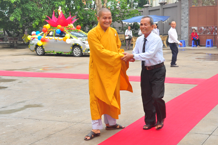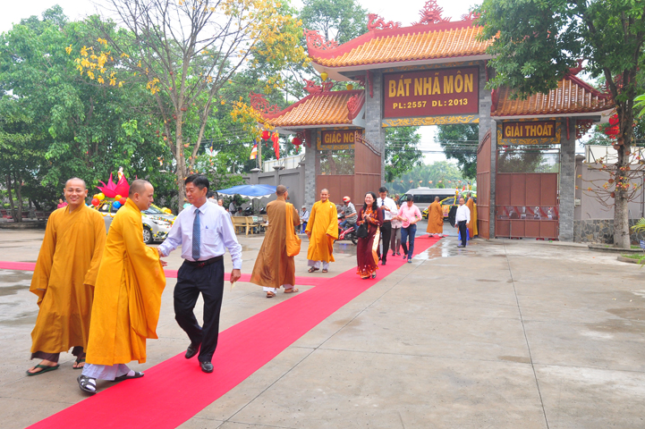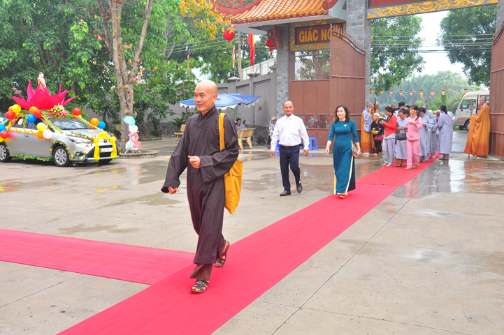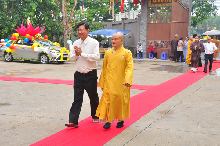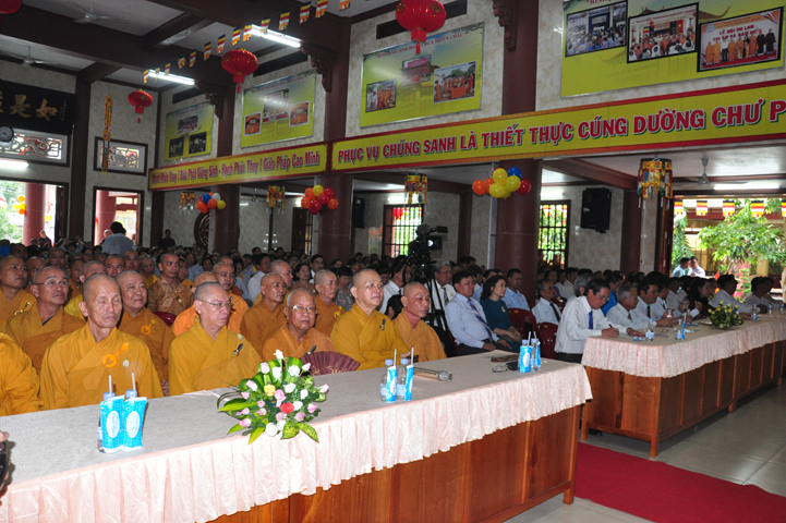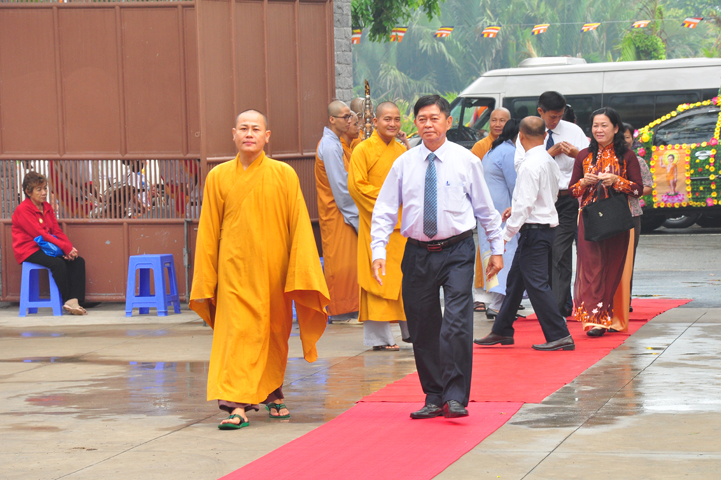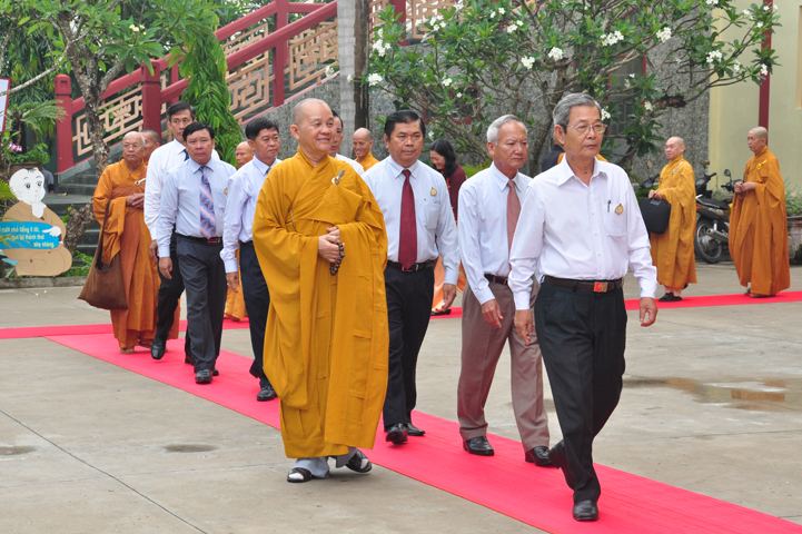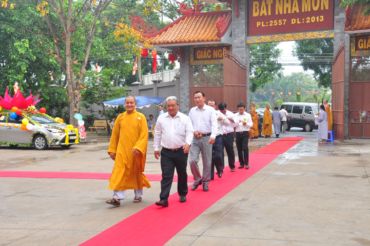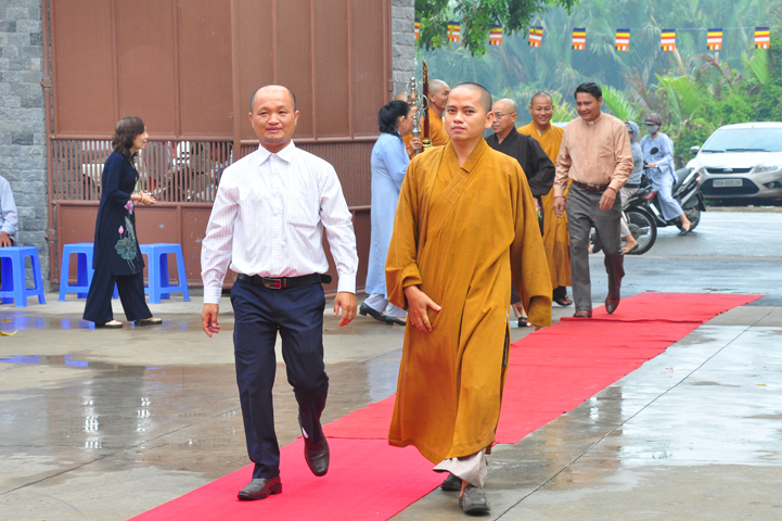 Từ lúc sáng sớm, Ban tổ chức đã cung đón chư tôn đức giáo phẩm Tăng, chư Ni, Phật tử trong cả tỉnh và thân tiếp quý vị lãnh đạo chính quyền về tham dự.