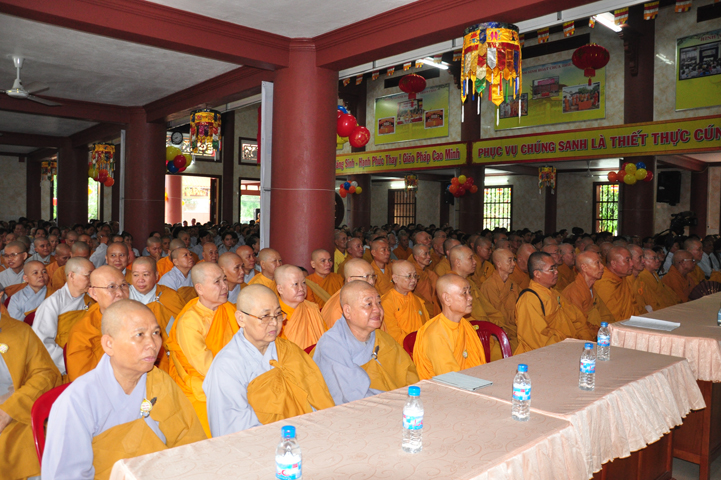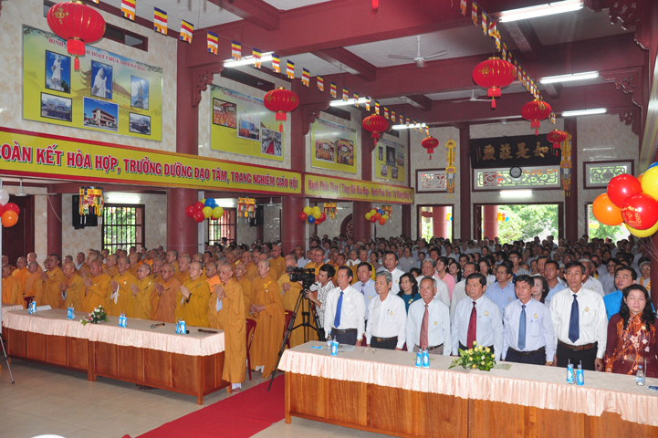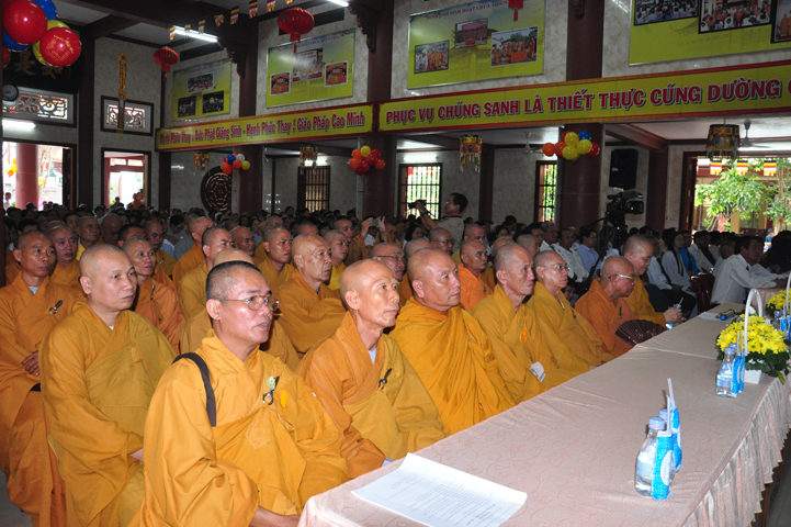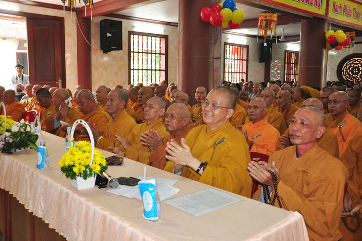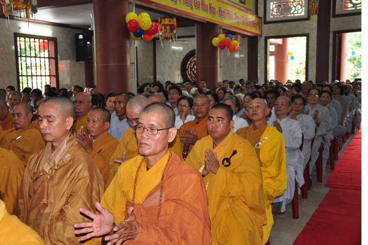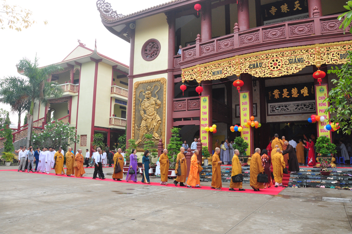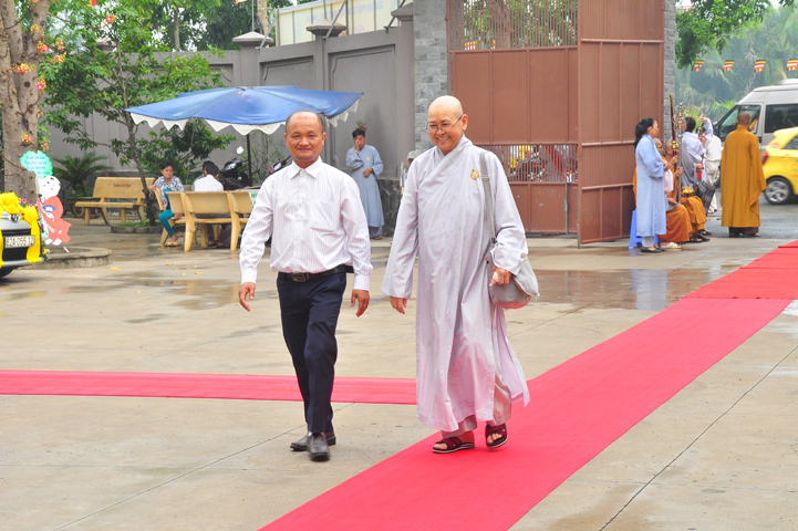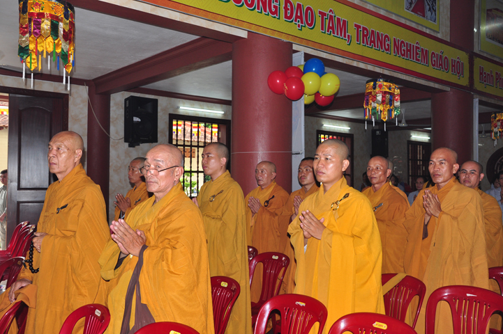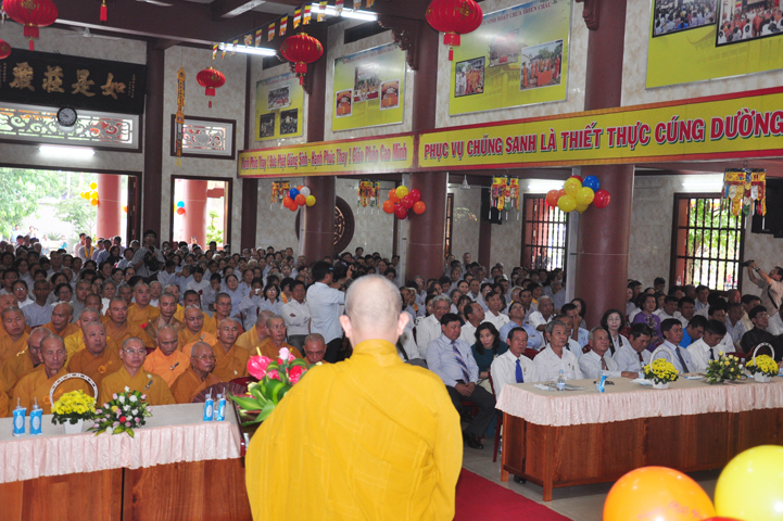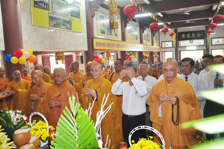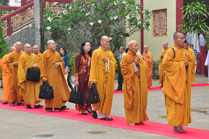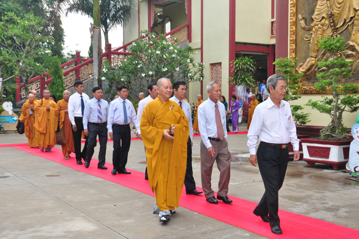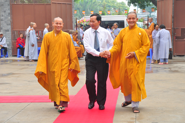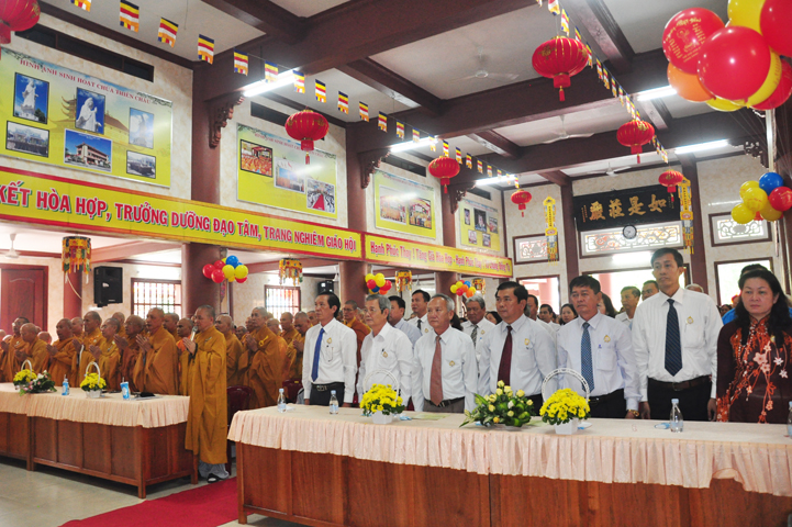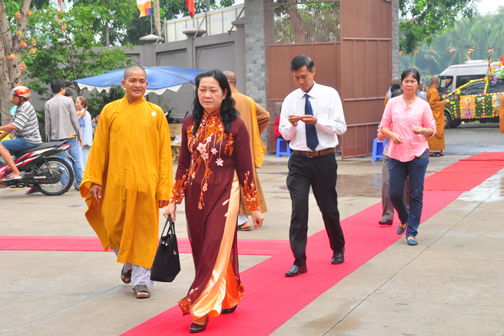 Từ lúc sáng sớm, Ban tổ chức đã cung đón chư tôn đức giáo phẩm Tăng, chư Ni, Phật tử trong cả tỉnh và thân tiếp quý vị lãnh đạo chính quyền về tham dự.