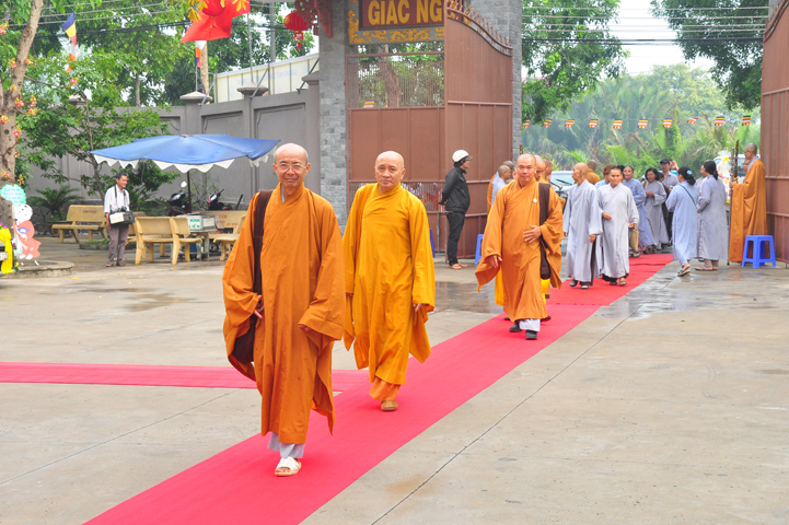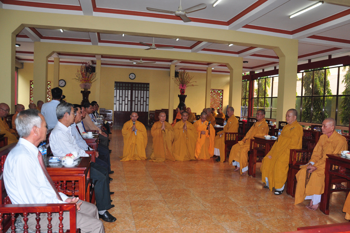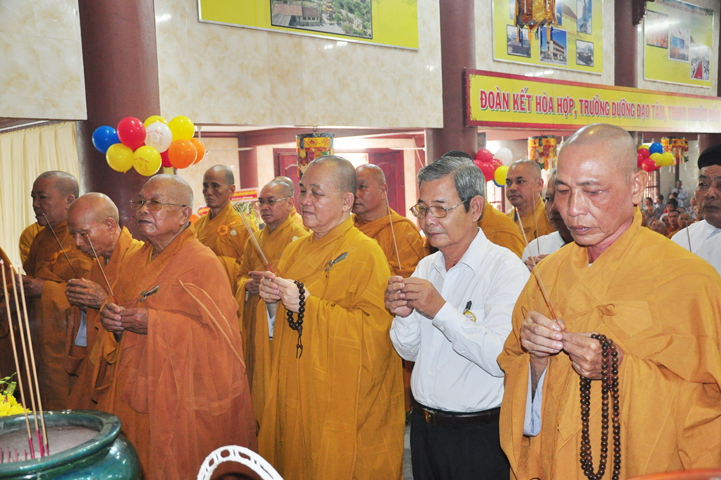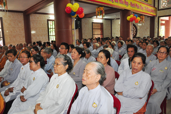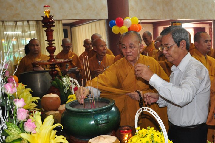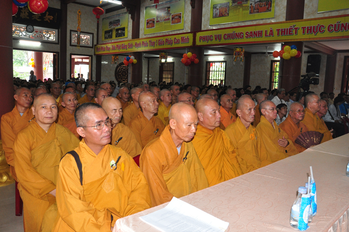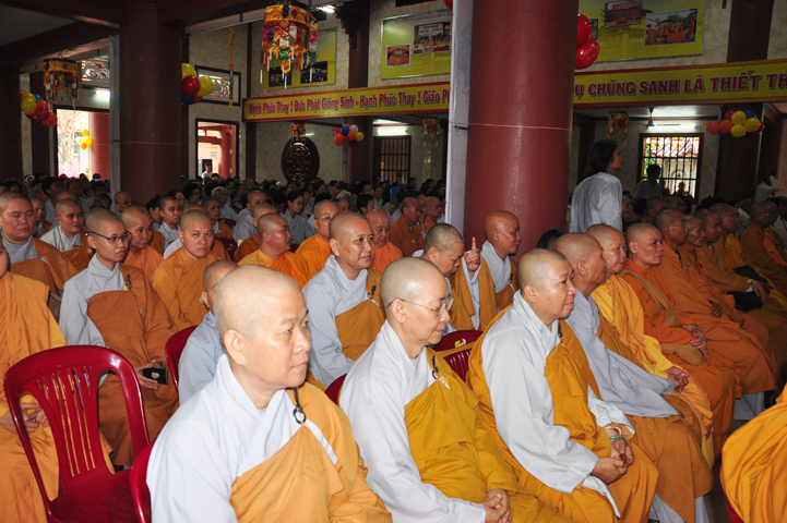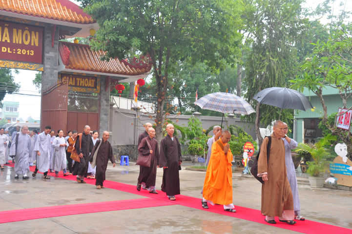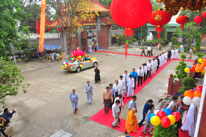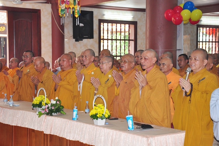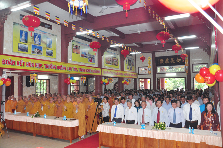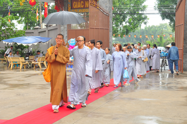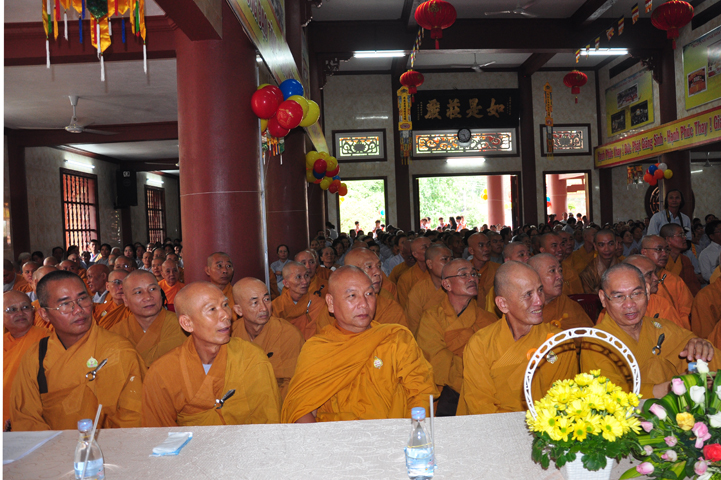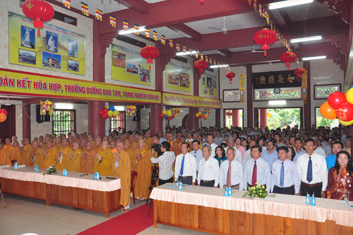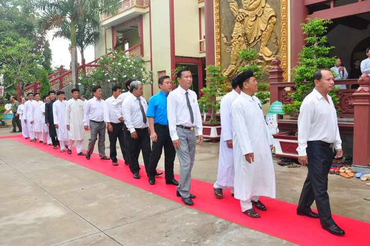 Từ lúc sáng sớm, Ban tổ chức đã cung đón chư tôn đức giáo phẩm Tăng, chư Ni, Phật tử trong cả tỉnh và thân tiếp quý vị lãnh đạo chính quyền về tham dự.