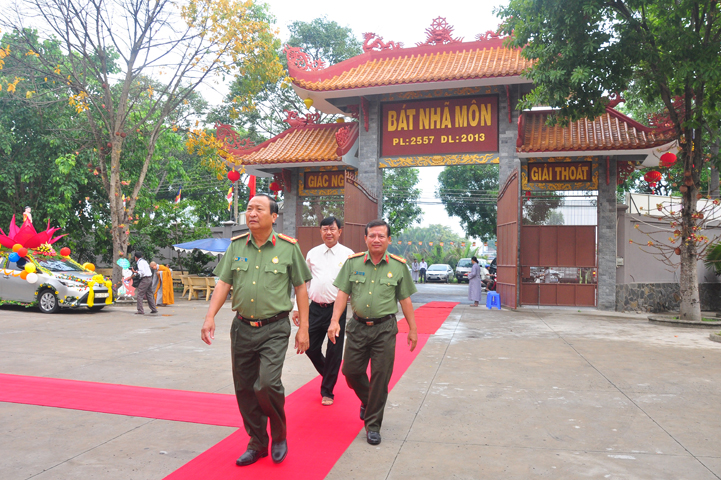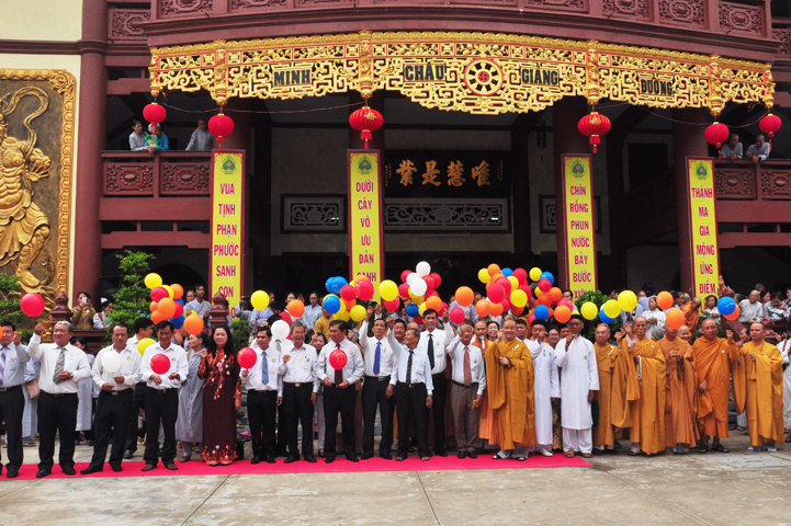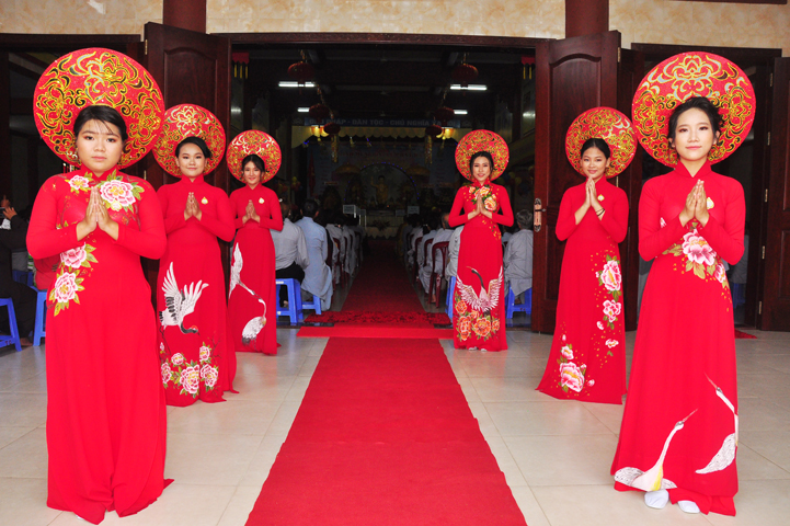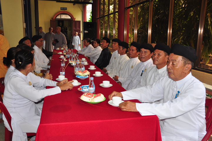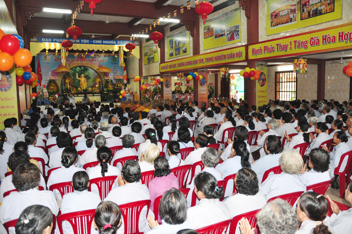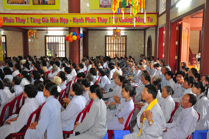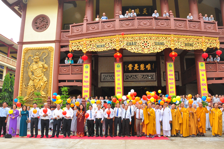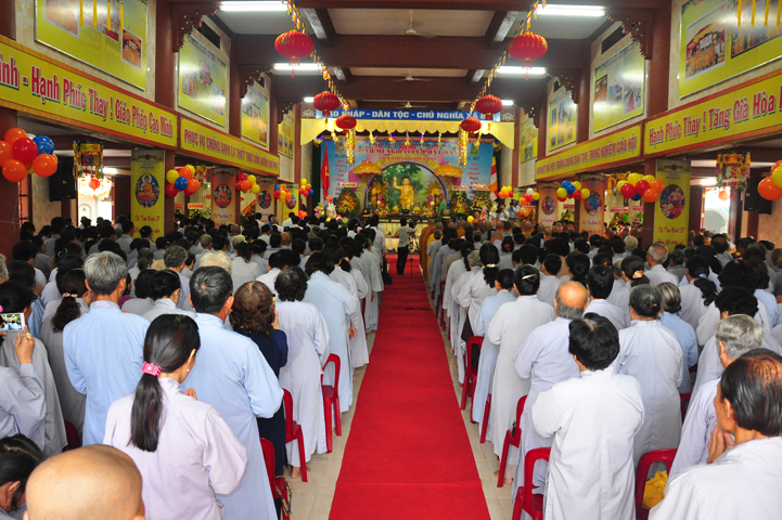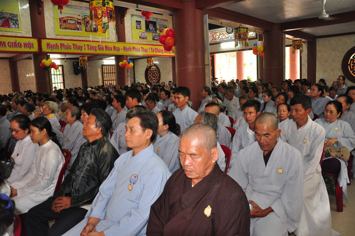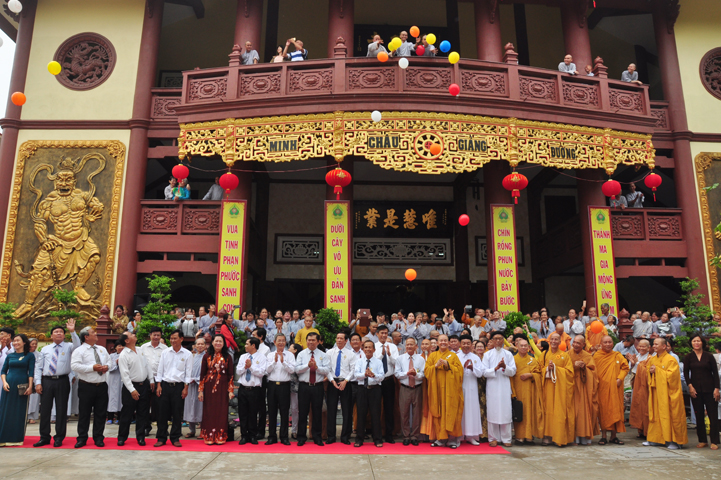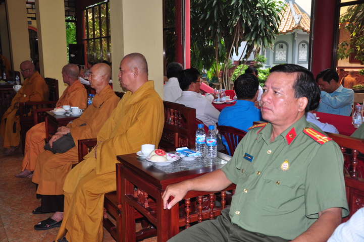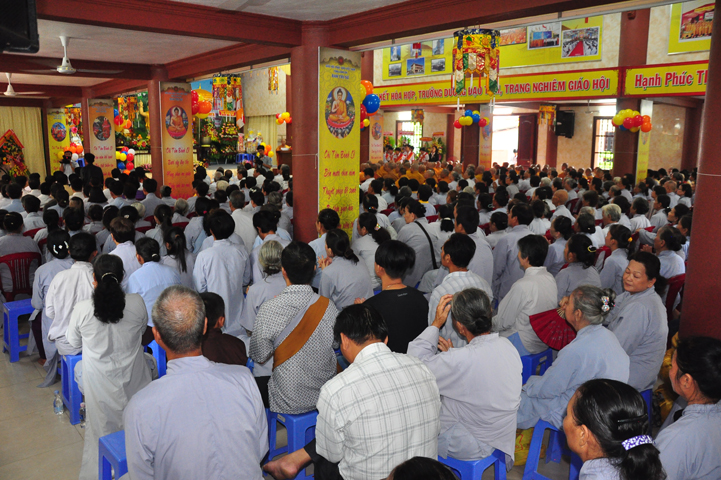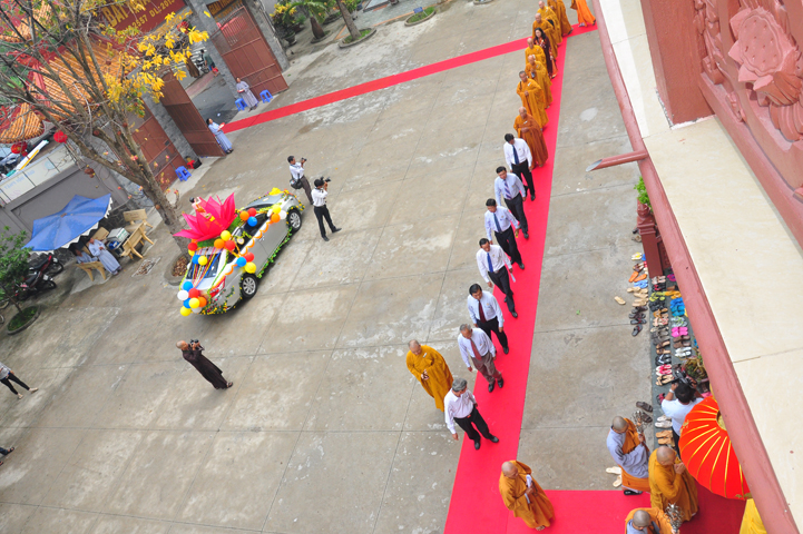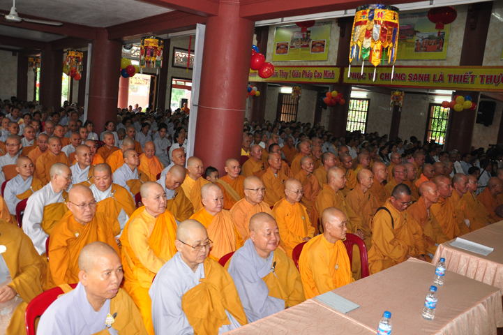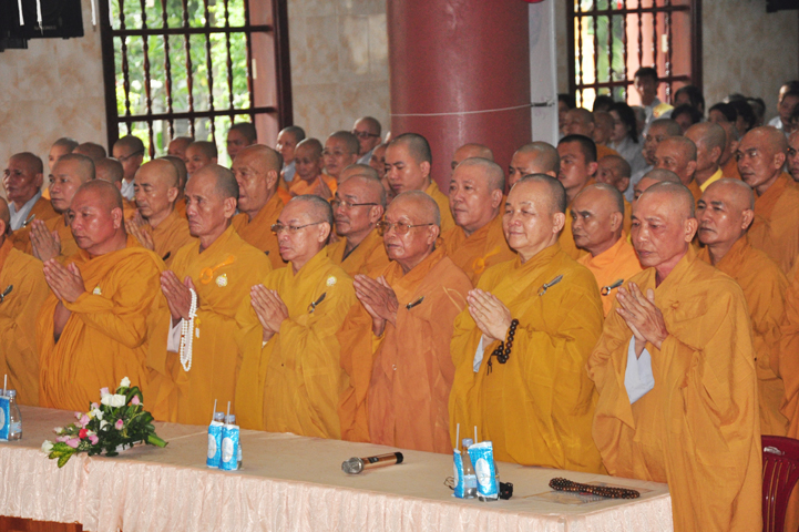 Từ lúc sáng sớm, Ban tổ chức đã cung đón chư tôn đức giáo phẩm Tăng, chư Ni, Phật tử trong cả tỉnh và thân tiếp quý vị lãnh đạo chính quyền về tham dự.