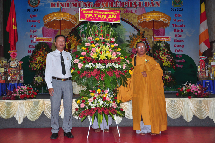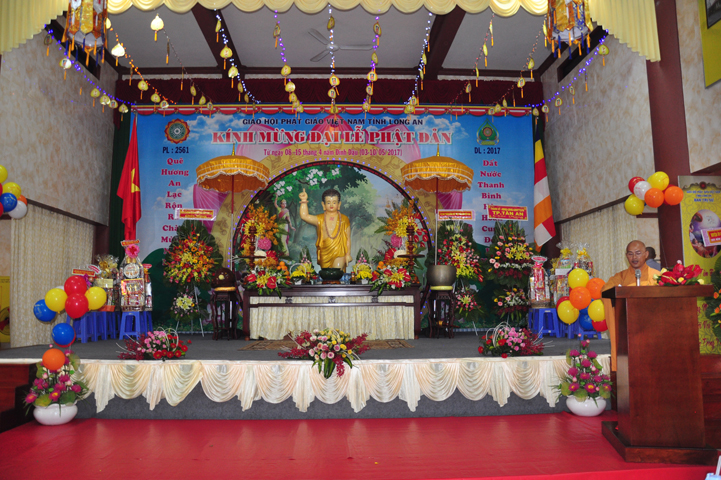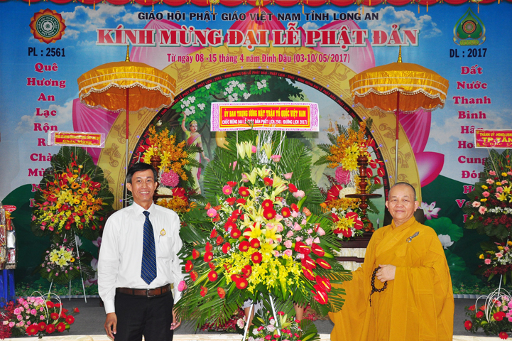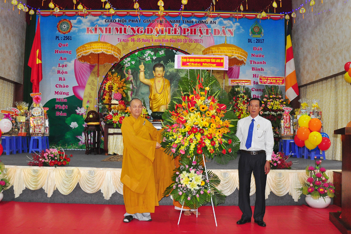 Trong không khí trang trọng của ngày Đại lễ Phật đản Phật lịch 2561 – Dương lịch 2017, thay mặt Tỉnh ủy – Hội đồng nhân dân – Ủy ban nhân dân – Ủy ban Mặt trận Tổ quốc Việt Nam tỉnh Long An, Ông Đinh Ngọc Lâm- Ủy Viên Ban Thường Vụ Tỉnh ủy; Trưởng Ban Tuyên giáo Tỉnh ủy phát biểu chúc mừng.