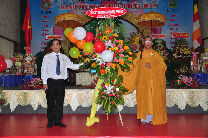 Tại Đại lễ, Ban tổ chức đã đón nhận nhiều lẵng hoa, phần quà của các cơ quan Ban ngành Tỉnh, Huyện, Phật giáo 12 huyện, thị, thành phố trân trọng gởi đến chúc mừng nhân ngày Đại lễ Phật đản.
