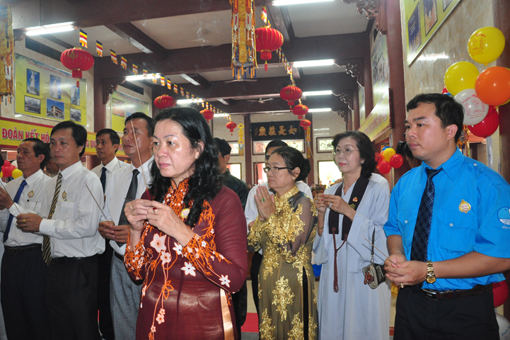 Bà Phạm Ngọc Tiệp- Phó Chủ tịch Ủy Ban Mặt Trận Tổ quốc Việt Nam tỉnh Long An; Ông Huỳnh Văn Thừng- Phó Giám đốc Sở Nội vụ; Trưởng Ban Tôn giáo tỉnh Long An; Ông Nguyễn Văn Hùng- Phó Trưởng Ban Dân Vận Thành ủy Tp. Tân An; Ông Nguyễn Quang Thái- Phó Chủ tịch UBND Tp. Tân An; Ông Lê Thành Phước – Chủ tịch UBMTTQ VN, Tp. Tân An; Ông Ngô Văn Hùng- Phó Chủ tịch UBND phường 3 .. cùng các Ban, Ngành đoàn thể tỉnh, huyện, thành phố, tôn giáo bạn đồng tham dự.