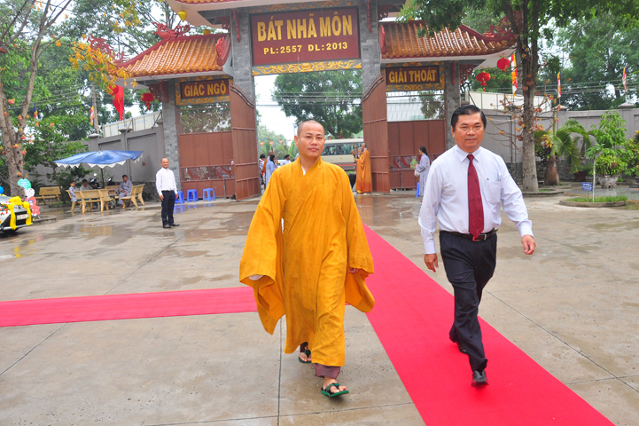 Trong xu hướng phát triển tốt đẹp đó, Ông mong rằng Phật giáo Long An, đồng bào Tăng, Ni, Phật tử tiếp tục thực hiện phương châm “Tốt đời, đẹp đạo”, góp phần cùng toàn Đảng, toàn quân, toàn dân thực hiện thắng lợi Nghị quyết Đại hội XII của Đảng, Nghị quyết Đại hội X Đảng bộ tỉnh; chư Tăng Ni tiếp tục phát huy những việc đã làm được ngày hôm nay, nhiều việc lợi đạo, ích đời, thực hiện cứu khổ độ sinh, hướng dẫn Phật tử sống trong chánh tín, thực hiện đúng pháp luật của Nhà nước, đoàn kết dân tộc, đoàn kết tôn giáo, hướng đến xây dựng xã hội mới với mục tiêu dân giàu, nước mạnh, xã hội công bằng, dân chủ, văn minh