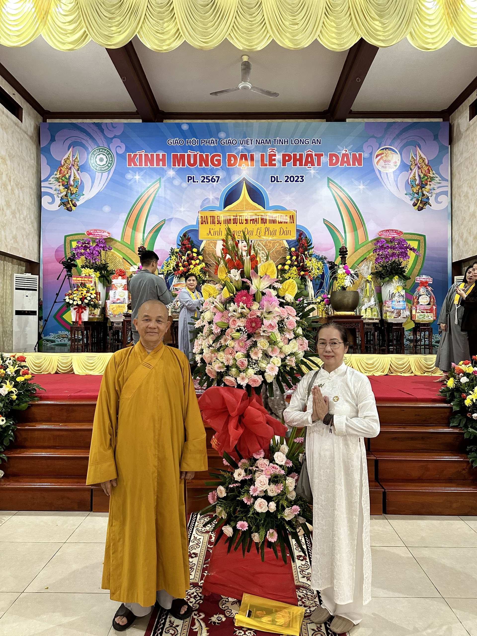 Hòa thượng Thích Huệ Hồng – Chứng minh BTS GHPGVN tỉnh Long An Tuyên đọc Thông điệp Phật đản PL.2567 của Đức Pháp chủ GHPVN. Nội dung trọng tâm được Đức Pháp Chủ nhấn mạnh trong thông điệp: “Mùa Phật đản năm nay, những người Phật tử Việt Nam chúng ta đồng thời thành kính tưởng niệm 60 năm ngày Bồ-tát Thích Quảng Đức vị pháp thiêu thân (1963-2023). Chúng ta tự hào về một giai đoạn lịch sử hào hùng của dân tộc và trong đó có dấu ấn về hạnh nguyện cao cả của Bồ-tát Thích Quảng Đức trên con đường phụng sự Đạo pháp và Dân tộc. Ngọn lửa Từ bi cùng với Trái tim bất diệt của Ngài có năng lực soi sáng và thức tỉnh lương tri của con người, hóa giải tất cả hận thù. Ngọn lửa đó đã chỉ cho mỗi người sống là phải biết vượt lên mọi chủ nghĩa cá nhân ích kỷ hẹp hòi và mọi ý niệm cực đoan. Ngài là biểu tượng sáng ngời của tinh thần Bi, Trí, Dũng của bậc Bồ-tát hiện thế và tinh thần nhập thế của Phật giáo Việt Nam”, Đức Pháp chủ nhấn mạnh