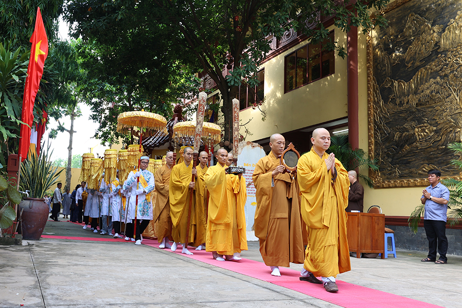 Thượng tọa Thích Quảng Tâm – UV HĐTS, Phó Trưởng ban Thường trực BTS GHPGVN tỉnh Long An đã thay lời thường trực BTS Phật giáo tỉnh dâng lời cảm tạ đến chư tôn đức và quý lãnh đạo khách quý trở về thanh dự Đại lễ.