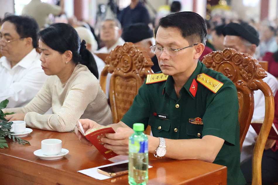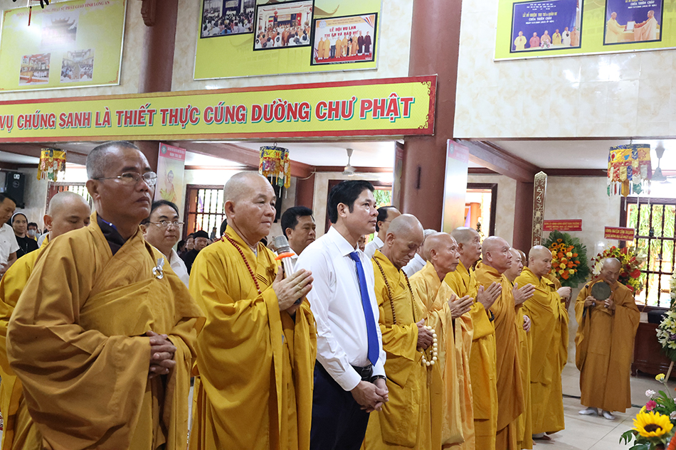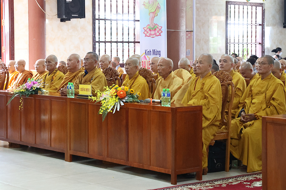 Chứng minh và tham dự buổi lễ có sự hiện diện của: Hòa thượng Thích Huệ Hồng, Hòa thượng Thích Quảng Ý, Hòa thượng Thích Giác Nguyên – đồng Chứng minh BTS GHPGVN tỉnh Long An; Hòa thượng Thích Minh Thiện – UV HĐTS, Phó ban Hoằng pháp TW, Trưởng BTS GHPGVN tỉnh Long An, Trưởng ban Tổ chức; TT. Thích Quảng Tâm – UV HĐTS, Phó Trưởng ban Thường trực BTS GHPGVN tỉnh Long An; Chư tôn đức Phó BTS GHPGVN tỉnh: TT. Thích Minh Thọ, TT. Thích Đức Hoàng, TT. Thích Lệ Trí, ĐĐ. Thích Lệ Duyên, ĐĐ. Thích Lệ Ngôn, NT. TN. Gương Liên, NT. TN. Như Tâm; Chư tôn đức Ban Thường trực BTS GHPGVN tỉnh Long An, các huyện, thị xã, thành phố trực thuộc.