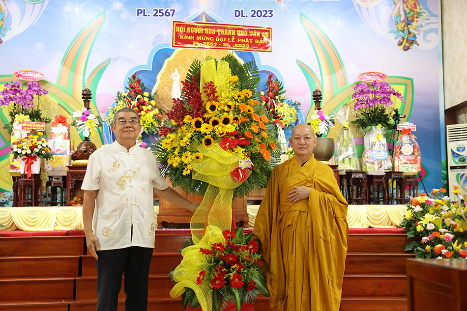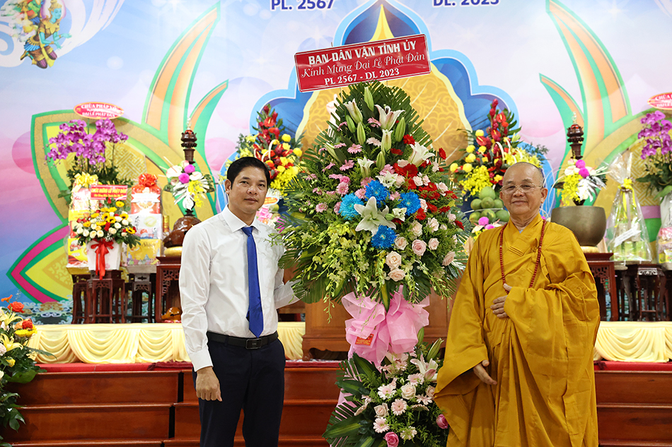 Tại buổi lễ Ban tổ chức đã được đón nhận nhiều lẵng hoa, phần quà quý báu từ Chư tôn đức Ban Trị sự các huyện thị trực thuộc tỉnh, Chư tôn đức Tăng Ni trụ trì các Tự viện, quý chức sắc đại diện Tôn giáo bạn, quý lãnh đạo chính quyền khách quý, ban ngành đoàn thể, hội đồng bào cộng đồng doanh nghiệp, Phật tử chúc mừng.