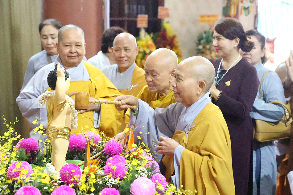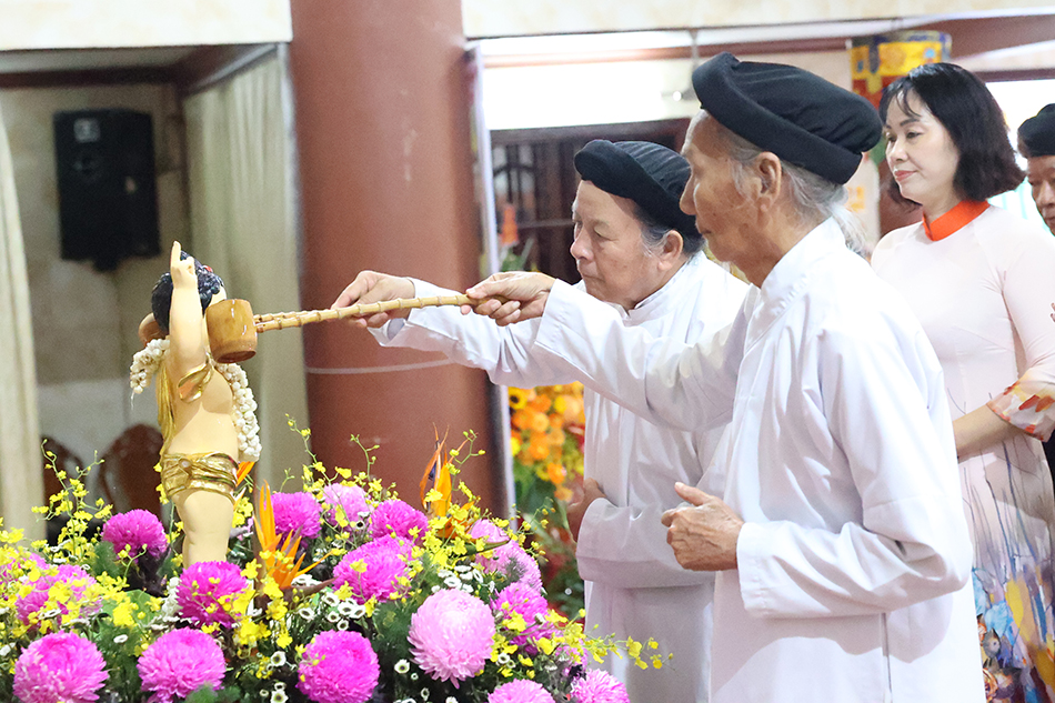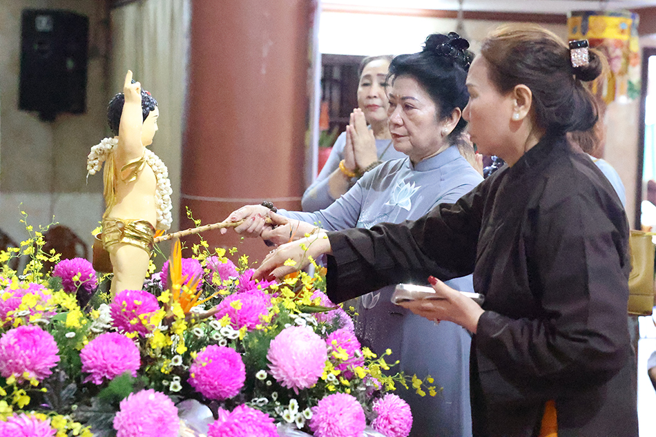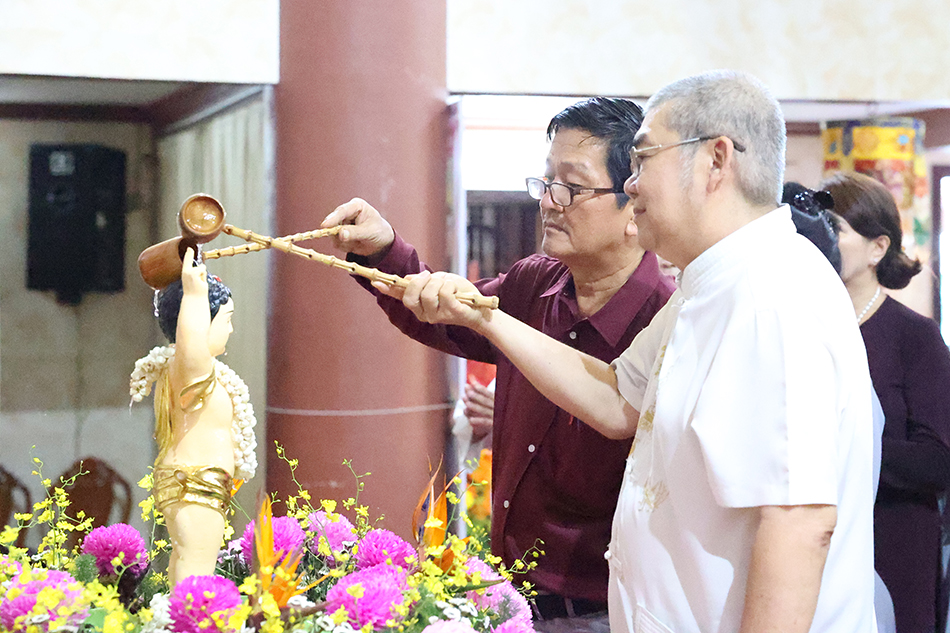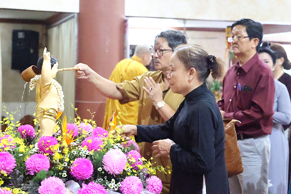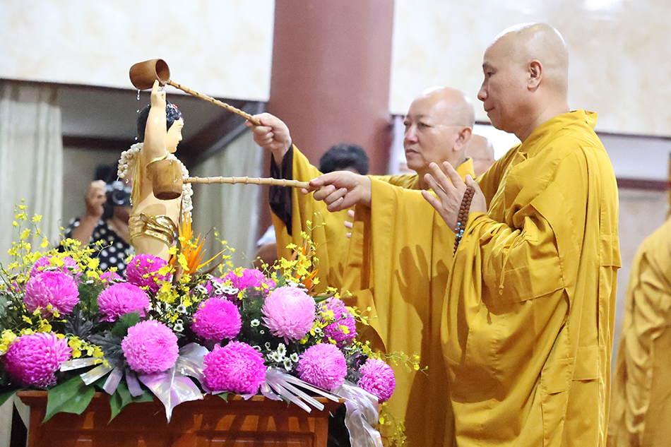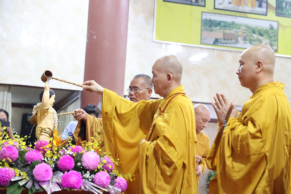 Sau lễ hành chính, dưới sự chứng minh của Chư tôn đức, toàn thể hội trường đồng âm phúng tụng Kinh Chuyển Pháp Luân theo khóa tụng thống nhất của Ban Văn hóa TƯ. Sau đó là Nghi thức Tắm Phật, hoàn mãn hồi hướng kết thúc buổi lễ.