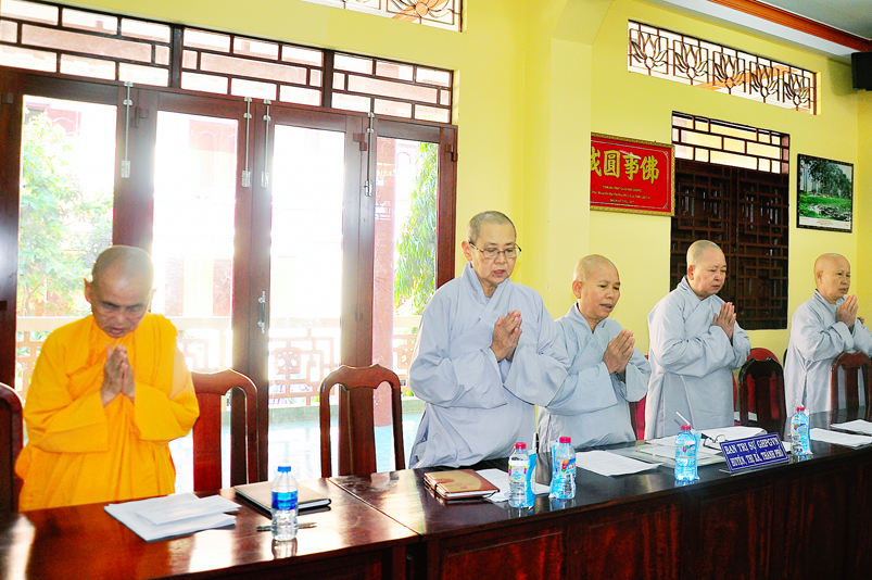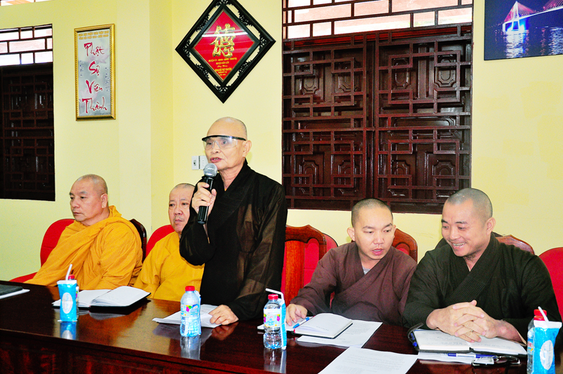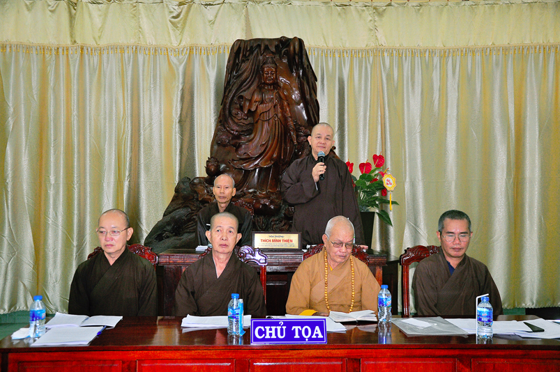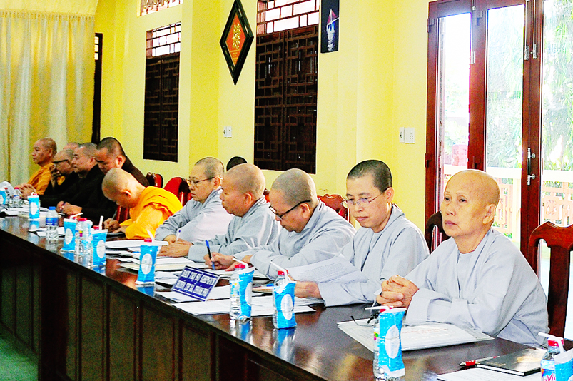 Nội dung buổi họp: Báo cáo tổng kết các hoạt động Phật sự của tỉnh trong tháng qua và hướng hoạt động Phật sự cho những tháng tới, đặc biệt về Phật đản, An cư Kiết hạ, khóa tu mùa hè cho thanh thiếu niên Phật tử và việc trao đổi về những bất ổn gọi là “Thiền tông Tân Diệu” với chùa Tân Diệu (địa chỉ 273 ấp Chánh Hội, xã Tân Mỹ, huyện Đức Hòa, tỉnh Long An)