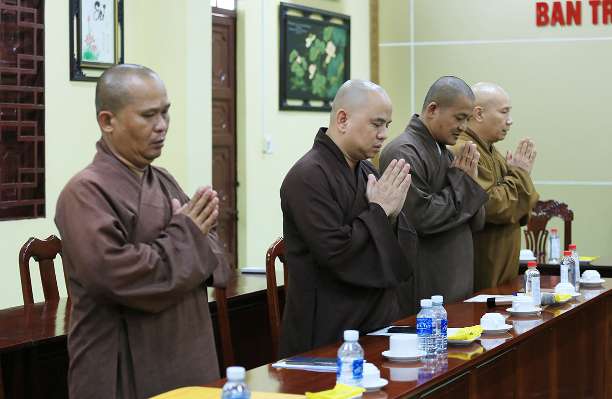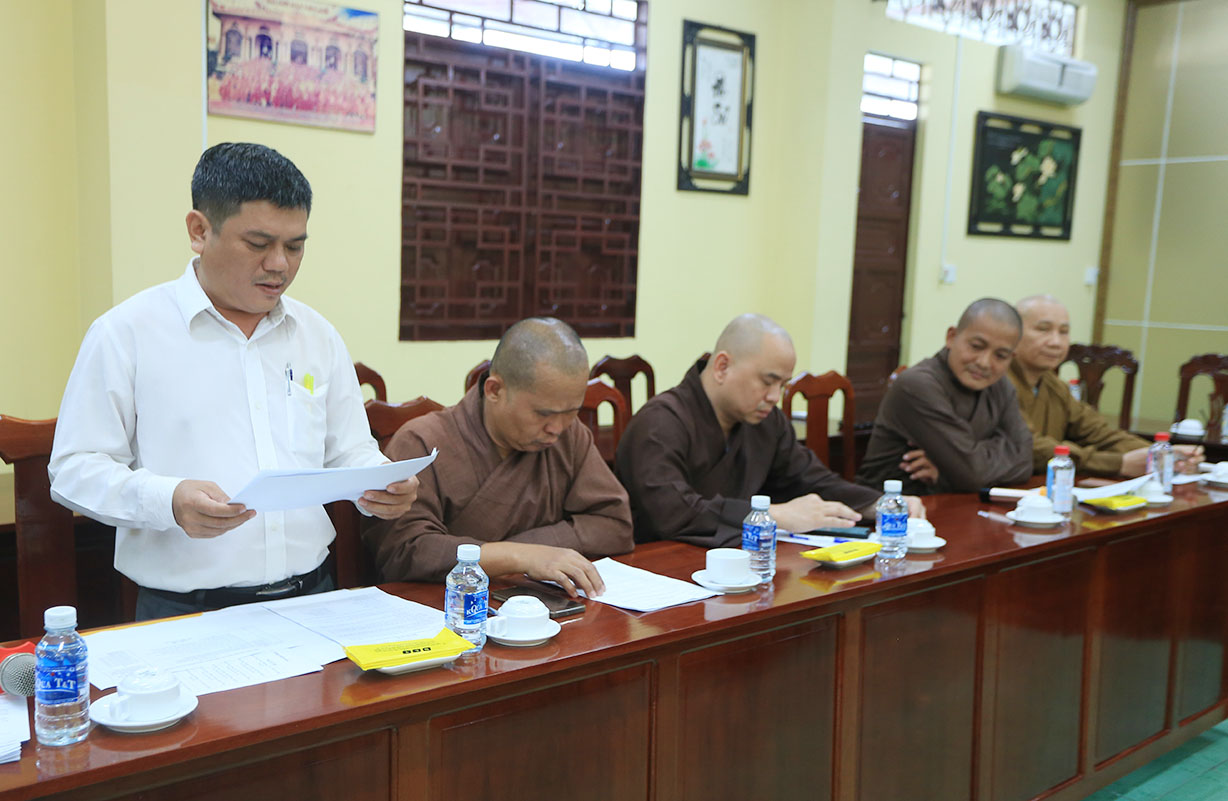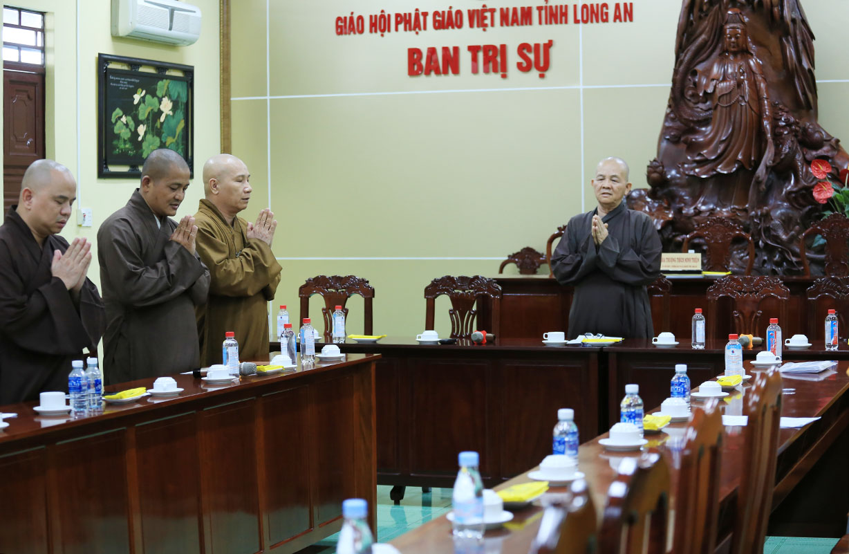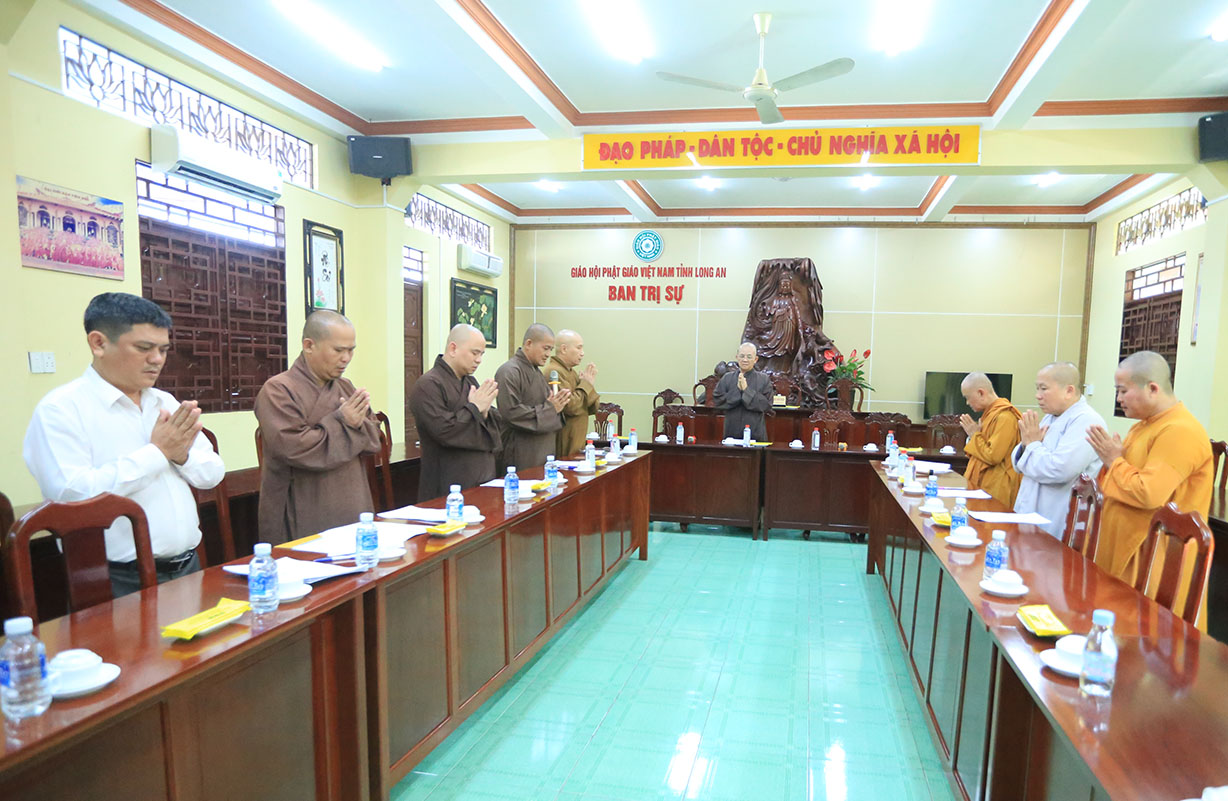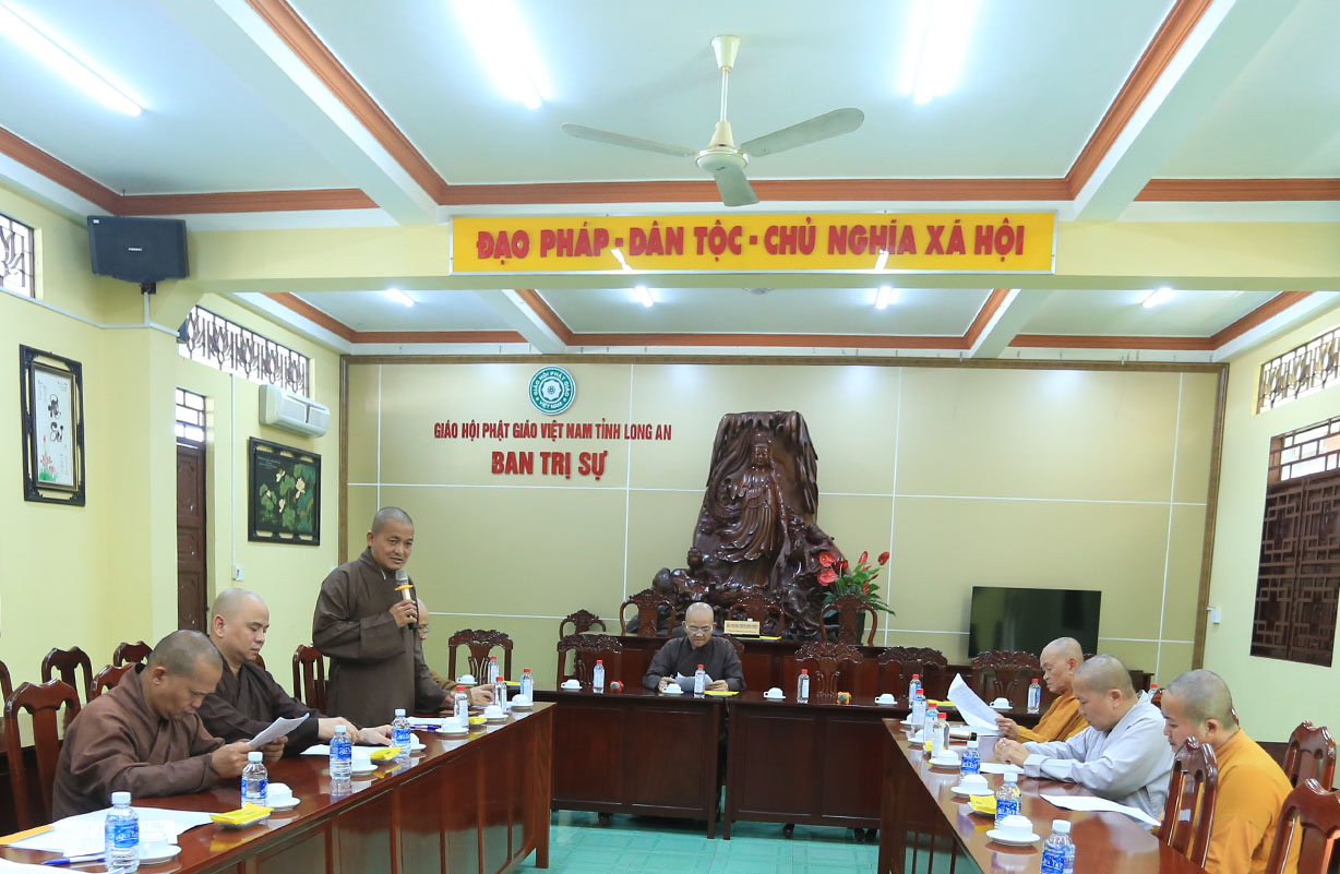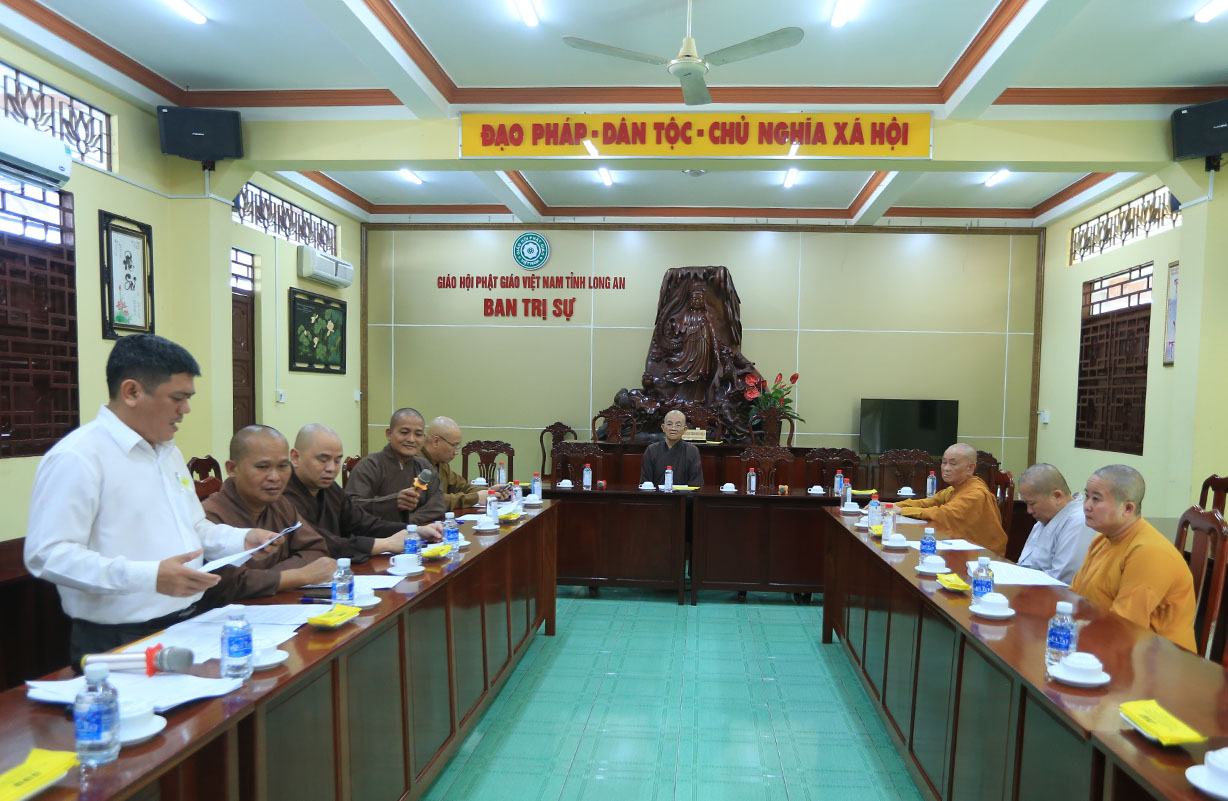 Buổi họp có sự chủ tọa của Hòa thượng Thích Minh Thiện- Ủy viên HĐTSTƯ, Phó Ban Hoằng pháp trung ương, Trưởng Ban Trị sự GHPGVN tỉnh Long An; TT Thích Đức Hoàng- Phó Ban Trị sự GHPGVN tỉnh Long An; ĐĐ Thích Lệ Duyên – Phó Ban, kiêm Chánh thư ký BTSGHPGVN tỉnh Long An; ĐĐ Thích Lệ Ngôn- Phó Ban, kiêm Trưởng ban Hoằng pháp GHPGVN tỉnh Long An; NT Thích nữ Gương Liên- Phó BTS GHPGVN tỉnh cùng quý chư tôn đức Tăng Ni trong thường trực BTS GHPGVN tỉnh tham dự.