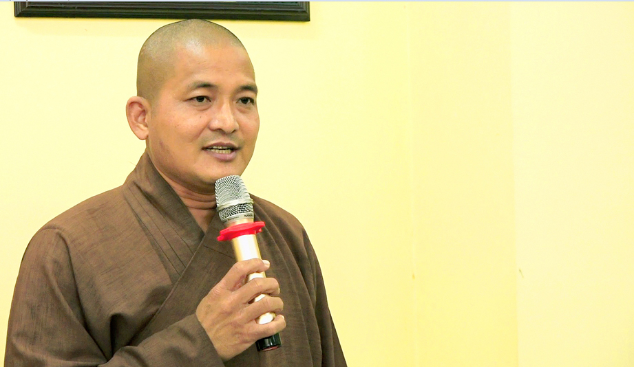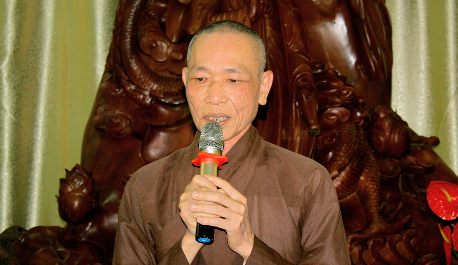 TT.Thích Quảng Tâm- Ủy viên HĐTS, Phó Trưởng ban thường trực Ban Trị sự GHPGVN tỉnh Long An thay mặt Thường trực BTS tỉnh tán thán chư tôn đức về công tác từ thiện xã hội.