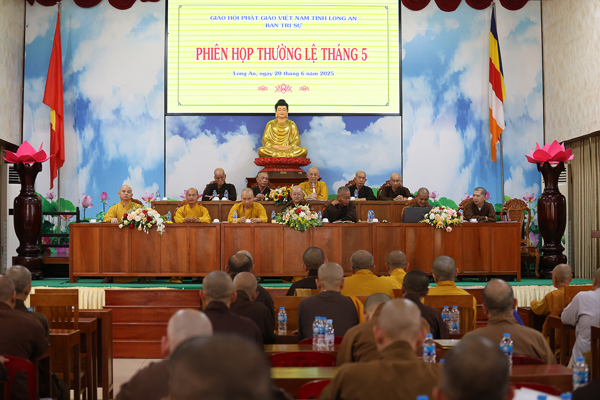 Sáng ngày 20/6/2025 (nhằm ngày 25 tháng 5 năm Ất Tỵ), tại Văn phòng Ban Trị sự GHPGVN tỉnh Long An – Chùa Thiên Châu, số 101 Huỳnh Văn Nhứt, phường 3, thành phố Tân An, tỉnh Long An, đã diễn ra phiên họp lệ nhằm tổng kết hoạt động Phật sự 6 tháng đầu năm và triển khai phương hướng hoạt động Phật sự trong thời gian tới.