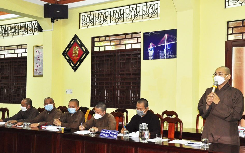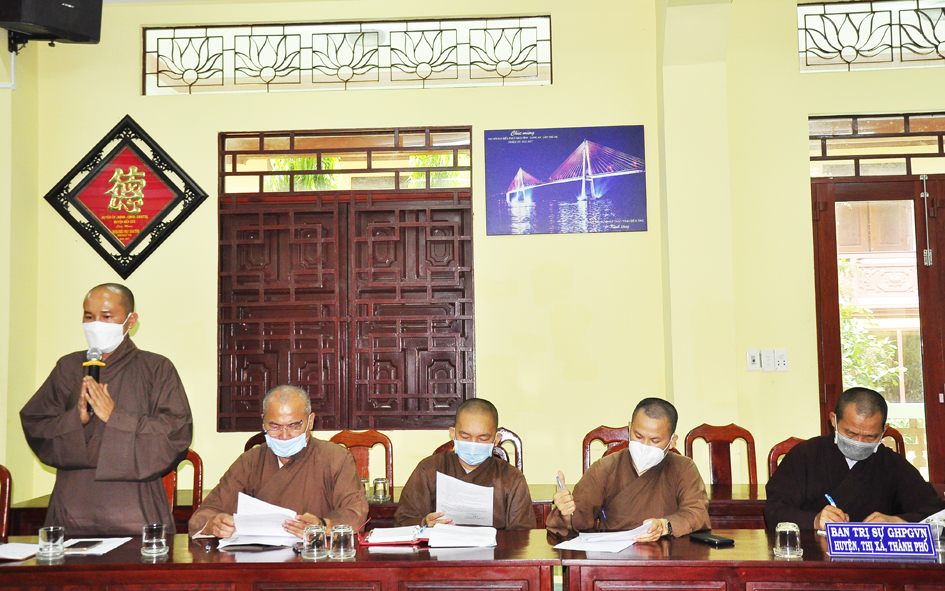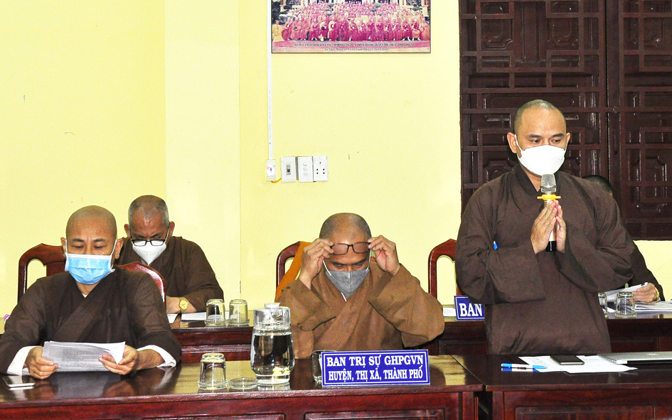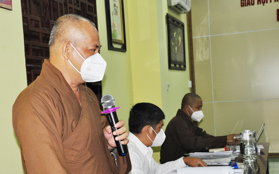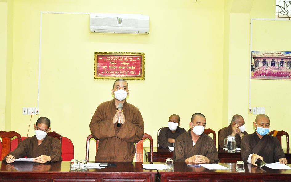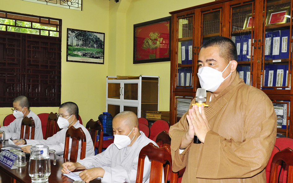 Đúc kiết phiên họp, Hòa thượng Thích Minh Thiện – Ủy viên HĐTS, Phó Trưởng ban Hoằng pháp TƯ; Trưởng Ban Trị sự GHPGVN tỉnh Long An tán dương những công đức của tất cá chư Tôn đức Phật giáo huyện, thị, thành phố, các phân ban. Nhân đây, Hòa thượng nhắc nhở quý Tôn Đức các Ban Trị sự huyện, thị cần thông báo, khuyến khích các tự viện, Tăng Ni huyện mình cẩn trọng hơn nữa trong việc tổ chức, sinh hoạt tập trung tại tự viện, trú xứ của mình trong khi dịch bệnh vẫn còn. Điển hình như 1 số tự viện, tăng ni đã có các trường hợp lây nhiễm Covid-19 vừa qua theo như báo cáo. Ban Trị sự GHPGVN huyện Đức Hòa, Ban Giáo dục Phật giáo, cần kết hợp Ban Chủ nhiệm lớp sơ cấp PHLA xem xét, tạo điều kiện để triển khai mở rộng mô hình học trung cấp gối đầu trong chương trình mới. Ban Trị sự GHPGVN huyện Đức Huệ cần phối hợp chính quyền các cấp xem xét tạo điều kiện, phát triển các trú xứ và khuyến khích thành lập cơ sở tôn giáo mới trong nhiệm kỳ. Về việc mở rộng khu du lịch Gò Chùa Nổi như văn bản đã nêu thì Ban Thường trực GHPGVN tỉnh Long An, Ban Trị sự PG huyện Vĩnh Hưng sẽ tổ chức phiên họp xem xét và đưa ra phương hướng. Vấn đề hoạt động Từ Thiện Xã Hội tại trường Bồ Đề Phương Duy, chùa Long Thạnh đang cần sự quan tâm hỗ trợ cho các cháu học sinh nơi đây. Vì theo tình hình hiện nay do dịch Covid-19 còn lây lan trong cộng đồng nên việc học online là nhu cầu cần thiết. Hiện nguồn kinh phí tại trường không đủ hỗ trợ trang thiết bị học tập cho các em học sinh nên mong Chư Tôn đức cùng chung tay góp sức ủng hộ, kêu gọi mạnh thường quân hỗ trợ. Xét thấy tình hình dịch Covid-19 vẫn còn ảnh hưởng, linh hoạt trong điều kiện thời gian tới , Chư Tôn đức đã cho ý kiến thống nhất chung ngày 25/11 Tân Sửu kết hợp tổ chức Đại lễ tưởng niệm lần thứ 713 ngày Đức vua – Phật hoàng Trần Nhân Tông nhập niết bàn và Công tác tổ chức Tổng kết hoạt động Phật năm 2021 của BTS tỉnh Long An.