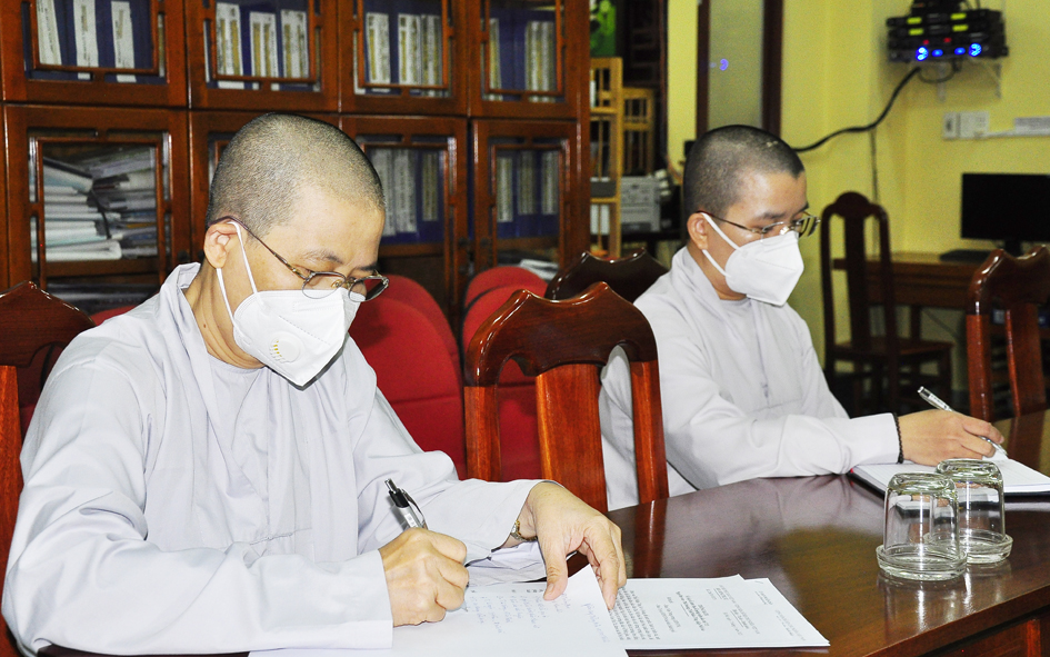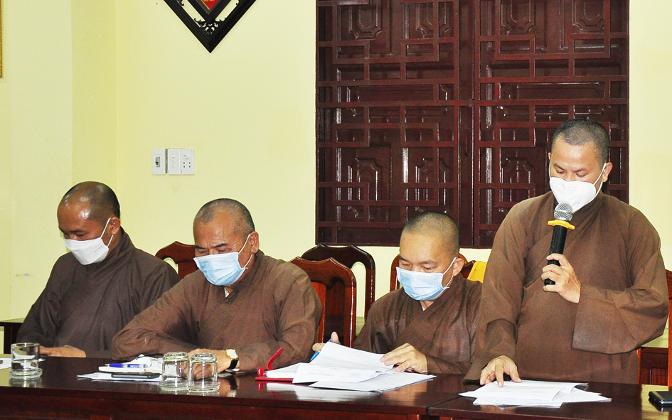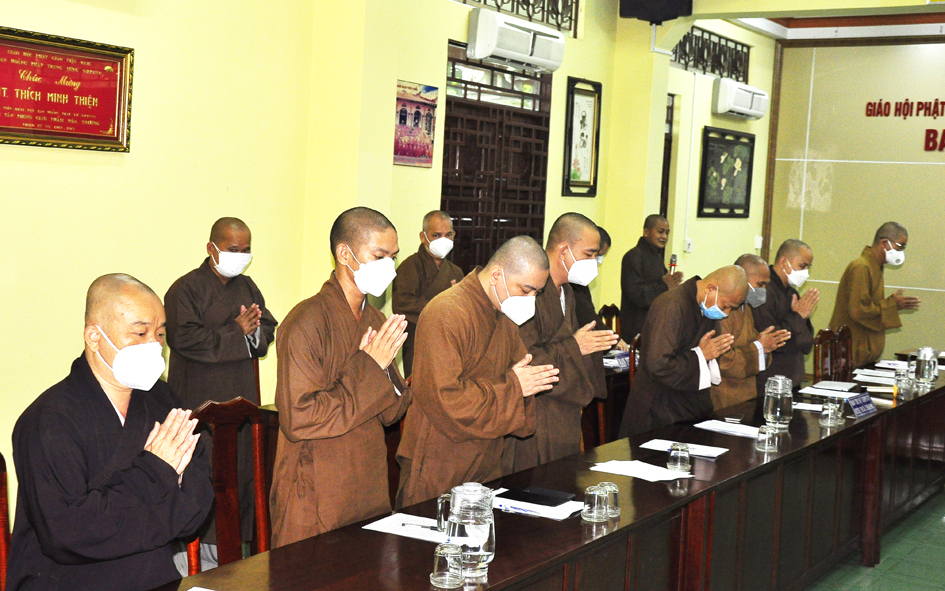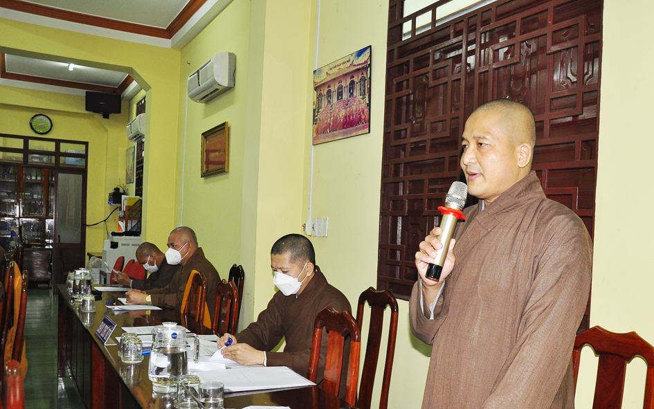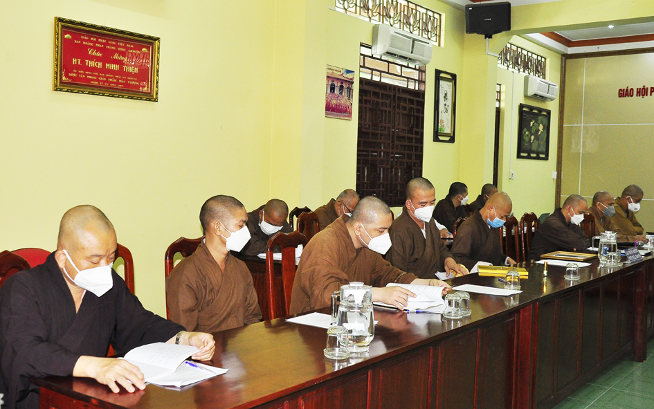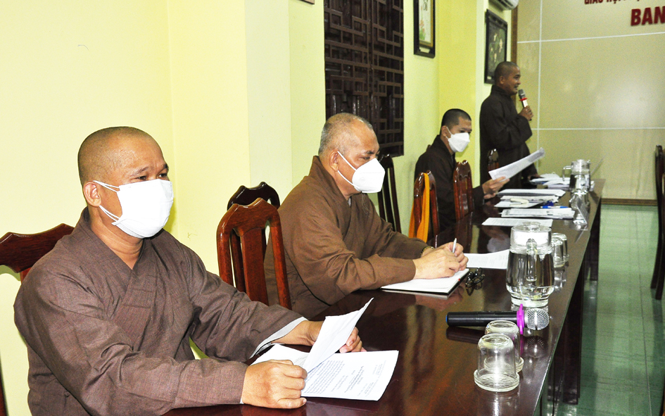Ngoài việc Báo cáo tổng kết các hoạt động Phật sự của tỉnh trong tháng qua và hướng hoạt động Phật sự cho tháng tới. Tại buổi họp, Thường trực BTS triển khai thông bạch HĐTS số 286 về việc tổ chức Đại lễ tưởng niệm lần thứ 713 ngày Đức vua – Phật hoàng Trần Nhân Tông nhập niết bàn và Công tác tổ chức Tổng kết hoạt động Phật năm 2021 của BTS tỉnh, trao tặng bằng Tuyên dương Công đức, bằng Công đức của Hội đồng Trị sự, BTS tỉnh. Thông qua văn bản của UBND huyện Vĩnh Hưng về việc mở rộng diện tích dất khu di tích gò chùa Nổi (chùa Cổ Sơn) và xin ý kiến Chư Tôn đức. Báo cáo kết quả tổ chức Đại hội Đại biểu Phật giáo cho 13 huyện, thị nhiệm kỳ 2021-2026 thành công. Báo cáo về việc tấn phong giáo phẩm thường niên cho Chư Tôn đức.