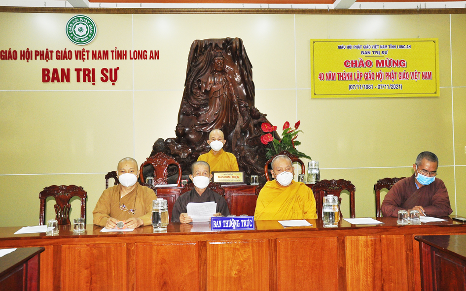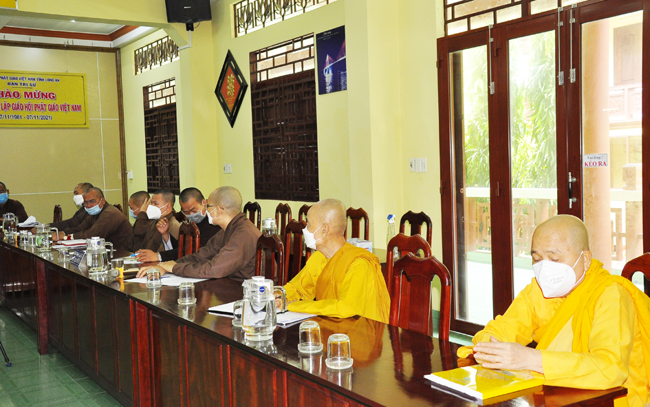 Sáng ngày 29 tháng 11 năm 2021 (nhằm ngày 25/10/Tân Sửu), Thường trực Ban Trị sự GHPGVN tỉnh Long An tổ chức phiên họp tổng kết hoạt động tháng qua, đồng thời đưa ra phương hướng hoạt động tháng tiếp theo tại Văn phòng Ban Trị sự GHPGVN tỉnh Long An – Chùa Thiên Châu, số 101, Huỳnh Văn Nhứt, phường 3, Thành phố Tân An.