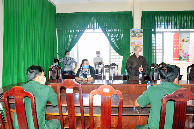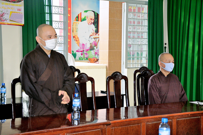 Hòa thượng Thích Minh Thiện bày tỏ sự cảm kích về tinh thần phục vụ của cán bộ, chiến sĩ, y, bác sĩ trong công tác phòng, chống dịch Covid-19. Hoà thượng ân cần thăm hỏi sức khỏe, điều kiện sinh hoạt của người dân đang cách ly và lực lượng đảm trách công tác phòng, chống dịch. Qua đó khẳng định, Phật giáo Long An sẽ luôn đồng hành cùng Đảng và Nhà nước phòng, chống đại dịch Covid-19.