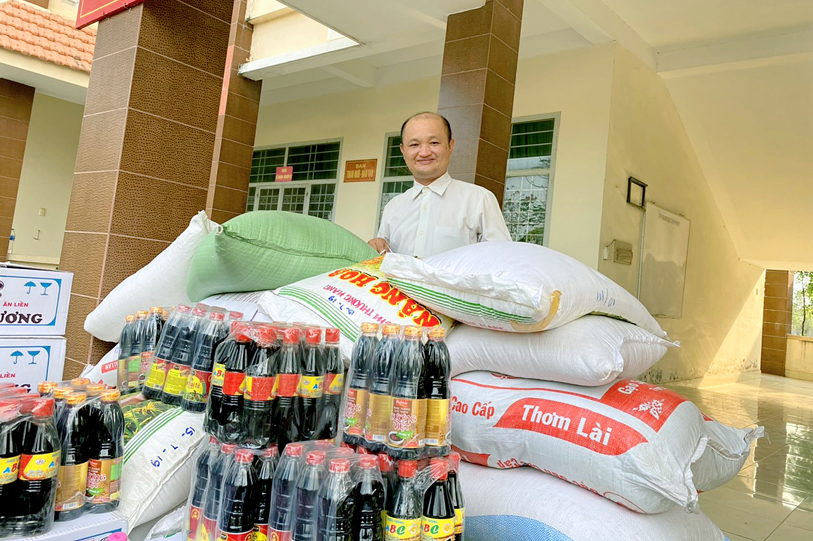 Tại đây, đoàn tặng 10 máy rửa tay khô tự động, 1 tấn gạo, 100 thùng mì, nhu yếu phẩm và 15 triệu đồng tiền mặt. Tổng trị giá đợt tặng quà lần này là 50 triệu đồng.
