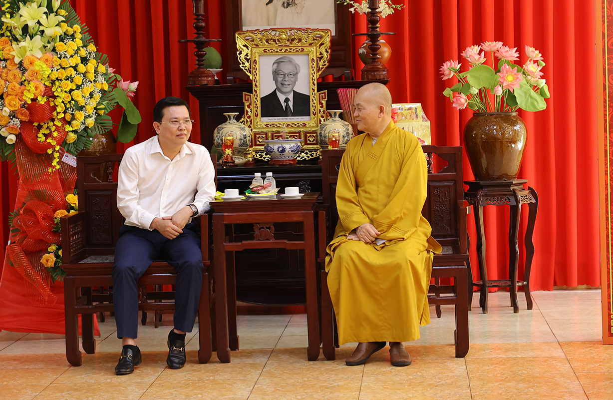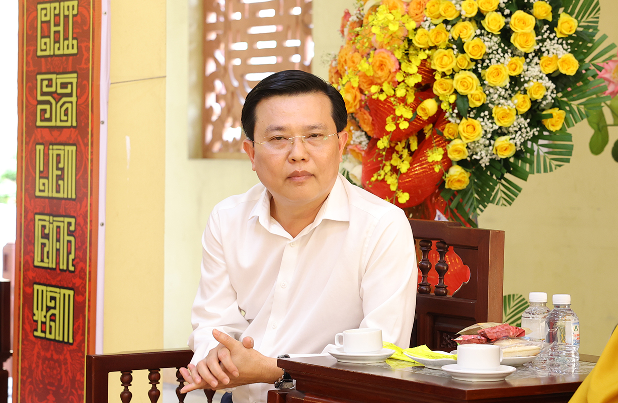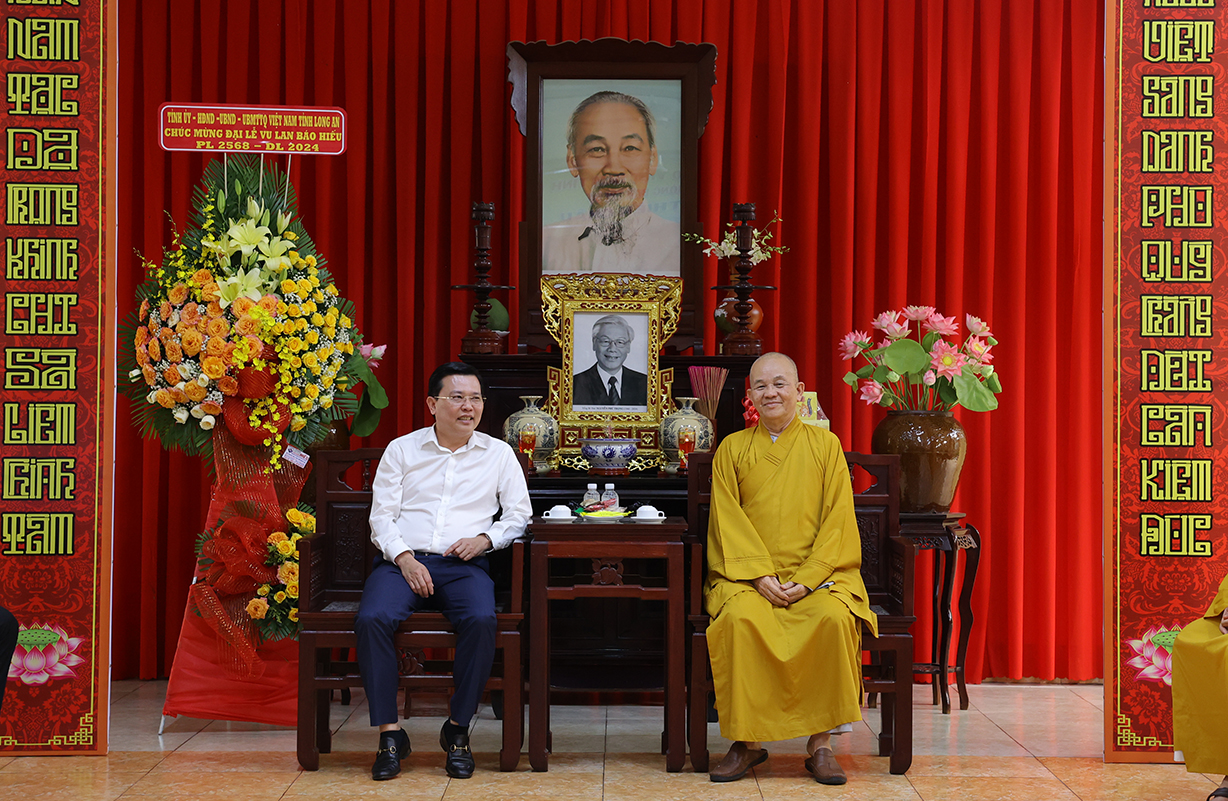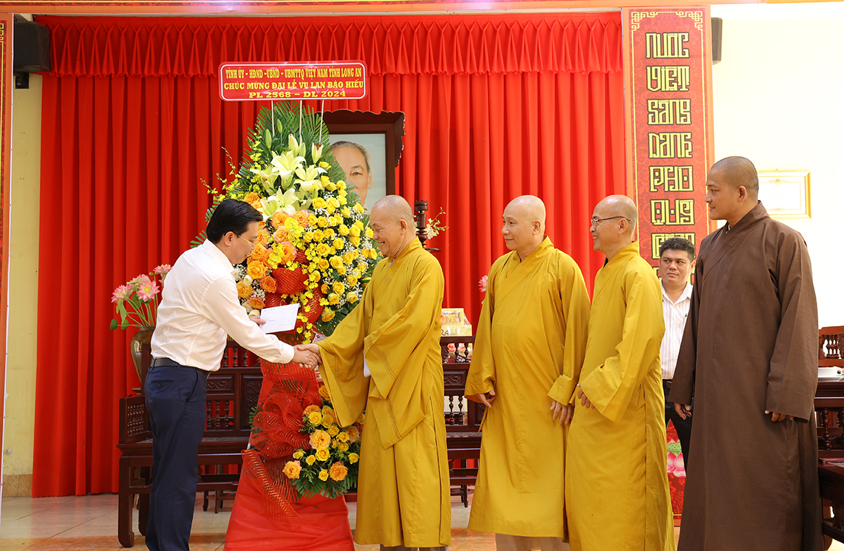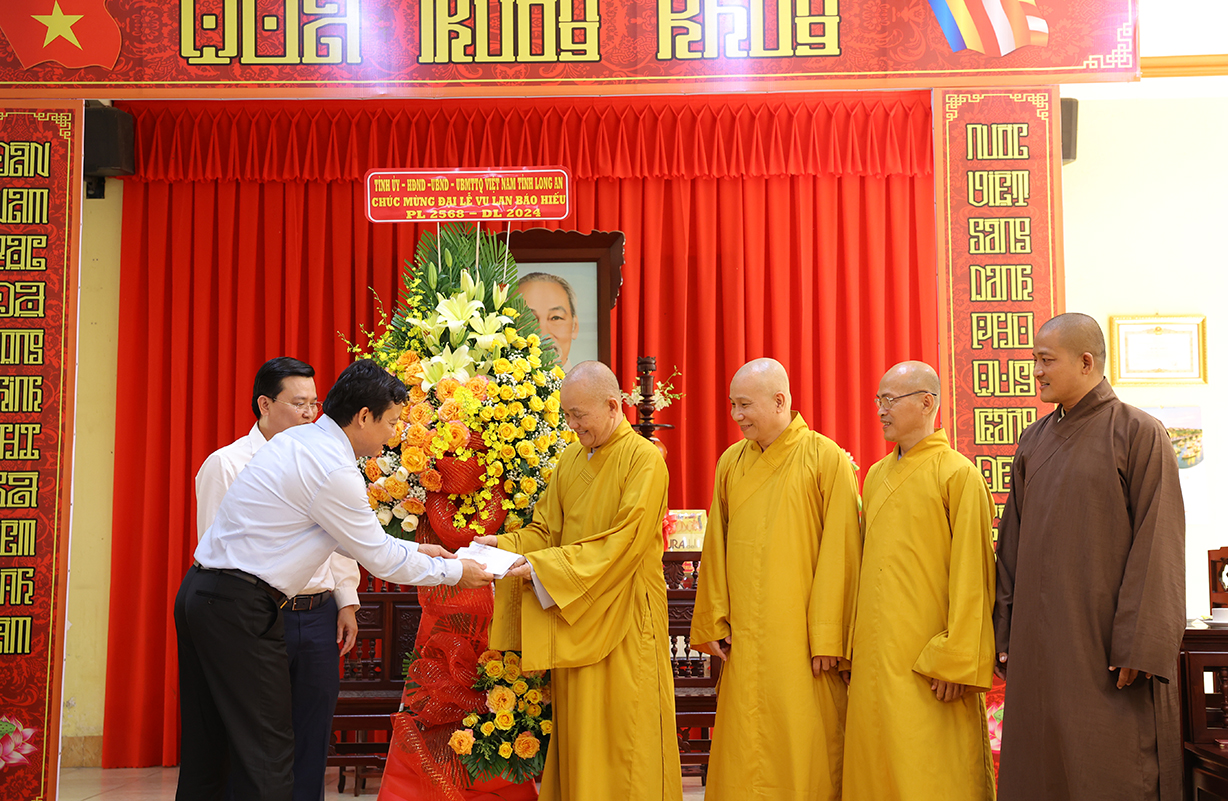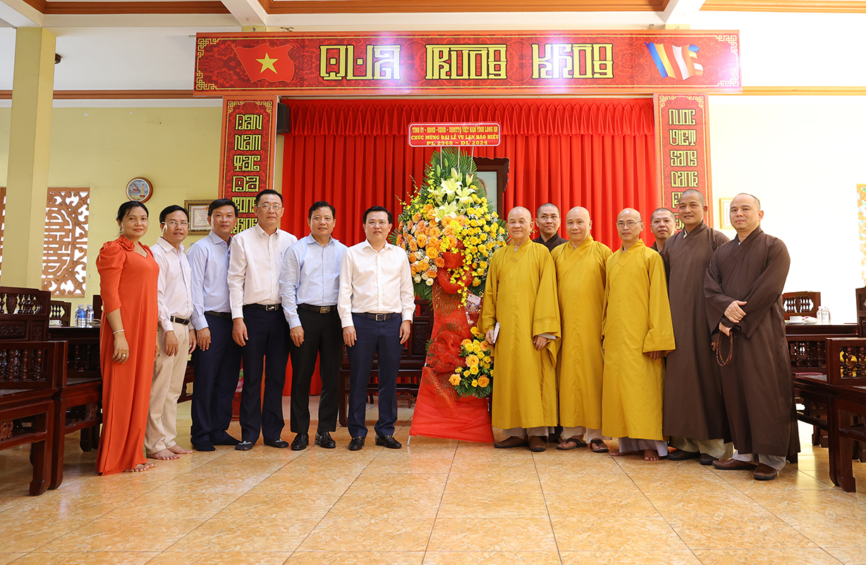 Tại buổi viếng thăm, Ông Nguyễn Thanh Hải Phó Bí thư Thường trực Tỉnh ủy đã tặng hoa và quà đồng thời chúc trương tôn đức đam ni đồng bào Phật tử trong tỉnh mạnh khỏe đón lễ Chu Lan báo hiếu Phật lịch 2568 trong niềm hoan hỉ và an lạc dịp này ông ghi nhận đánh giá cao những đóng góp của ban trị sự giáo hội Phật giáo Việt Nam tỉnh các huyện thị thành do đồng bào Phật tử đối với sự nghiệp phát triển kinh tế xã hội của tỉnh đặc biệt là các hoạt động an sinh xã hội ông cũng bày tỏ mong muốn thời gian tới chưa Tăng ni Phật tử tiếp tục phát huy truyền thống yêu nước xây dựng khối đại đoàn kết toàn dân tộc đồng hành cùng chính quyền thực hiện tốt chính sách an sinh xã hội. Nâng cao chất lượng cuộc sống của nhân dân chúng ta xây dựng quê hương ngày càng giàu đẹp văn minh.