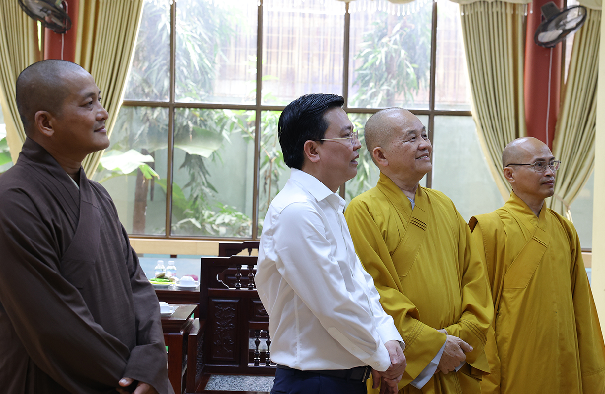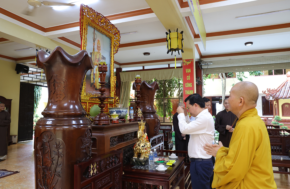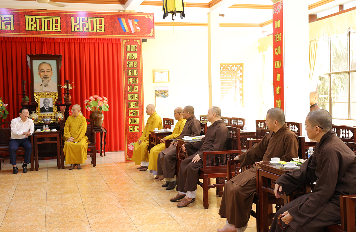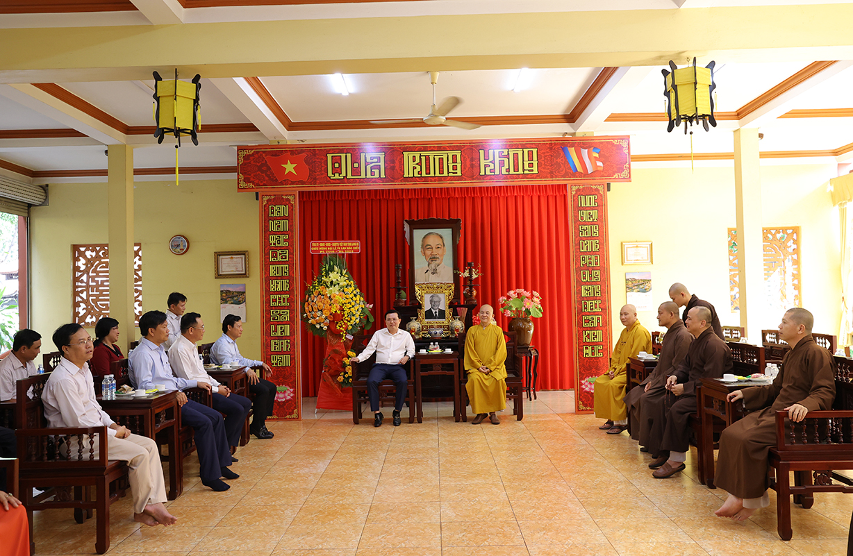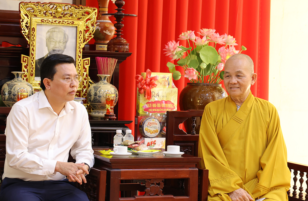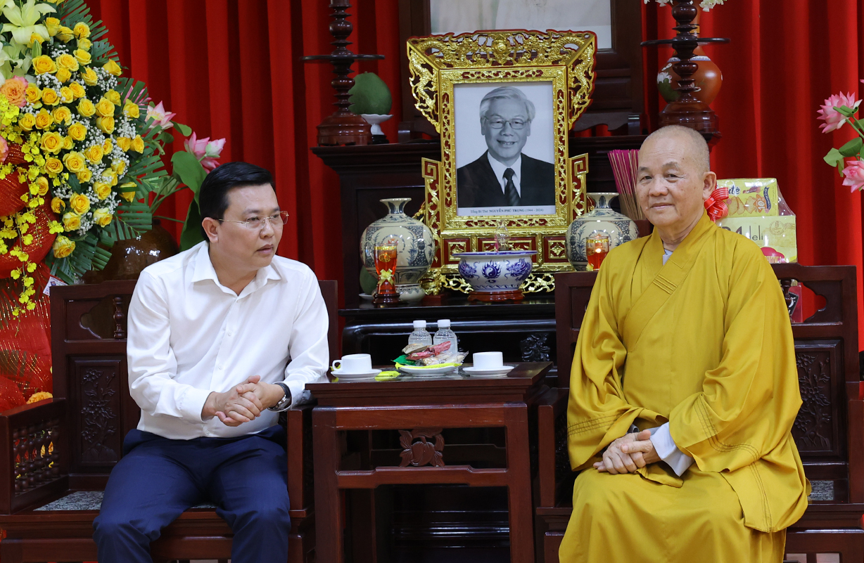 Tại buổi viếng thăm, Ông Nguyễn Thanh Hải Phó Bí thư Thường trực Tỉnh ủy đã tặng hoa và quà đồng thời chúc trương tôn đức đam ni đồng bào Phật tử trong tỉnh mạnh khỏe đón lễ Chu Lan báo hiếu Phật lịch 2568 trong niềm hoan hỉ và an lạc dịp này ông ghi nhận đánh giá cao những đóng góp của ban trị sự giáo hội Phật giáo Việt Nam tỉnh các huyện thị thành do đồng bào Phật tử đối với sự nghiệp phát triển kinh tế xã hội của tỉnh đặc biệt là các hoạt động an sinh xã hội ông cũng bày tỏ mong muốn thời gian tới chưa Tăng ni Phật tử tiếp tục phát huy truyền thống yêu nước xây dựng khối đại đoàn kết toàn dân tộc đồng hành cùng chính quyền thực hiện tốt chính sách an sinh xã hội. Nâng cao chất lượng cuộc sống của nhân dân chúng ta xây dựng quê hương ngày càng giàu đẹp văn minh.